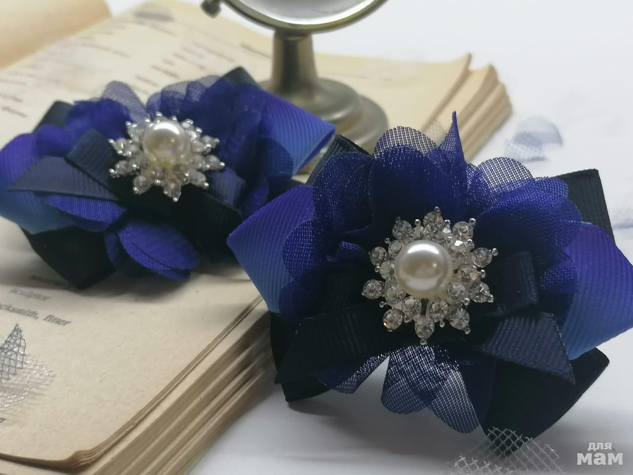 4) Школьное синее. Девочки они бомба! Градиент, шифон, ювелирная серединка. Размер бантиков 8 см.