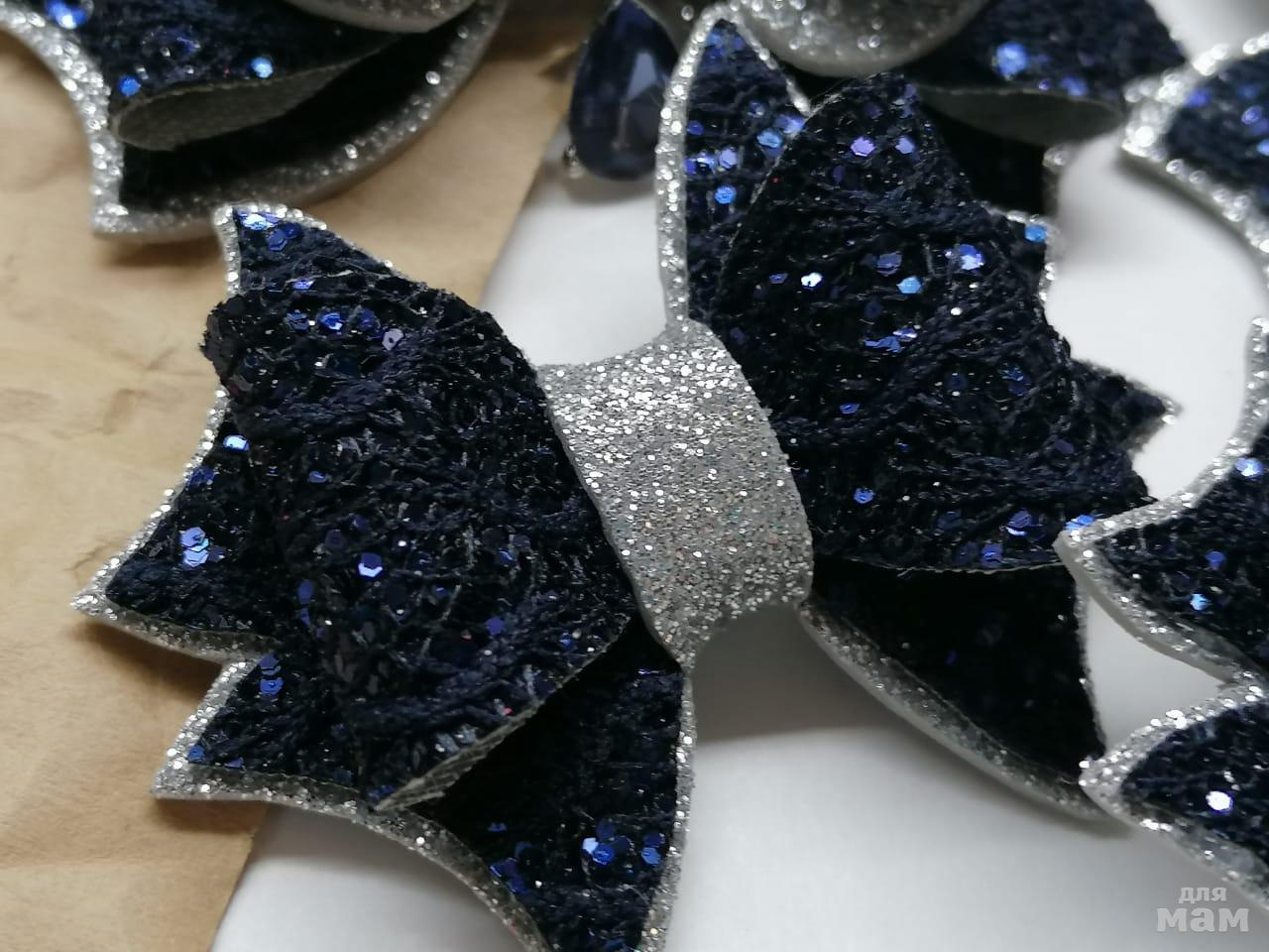 2) Шикарнейший набор из глитерной экокожи. Кто видио видел, подтвердят - он просто божественно сверкает и переливается! Нереальная красота. Большие бантики 10см, маленькие 6,5 см (основа на выбор). В единственном экземпляре. Без повтора.