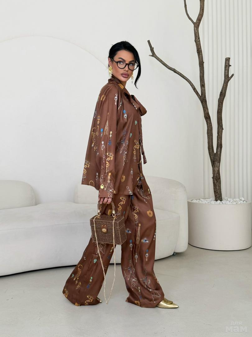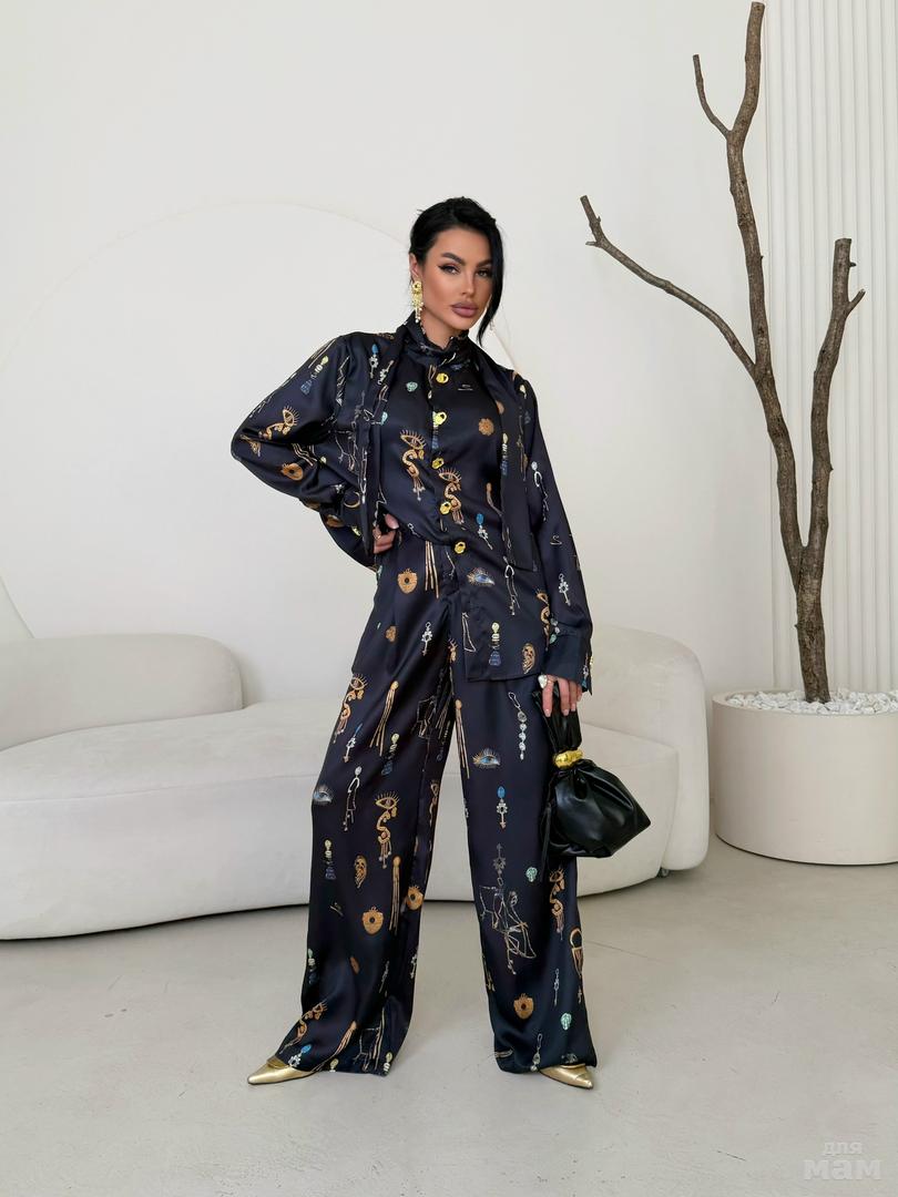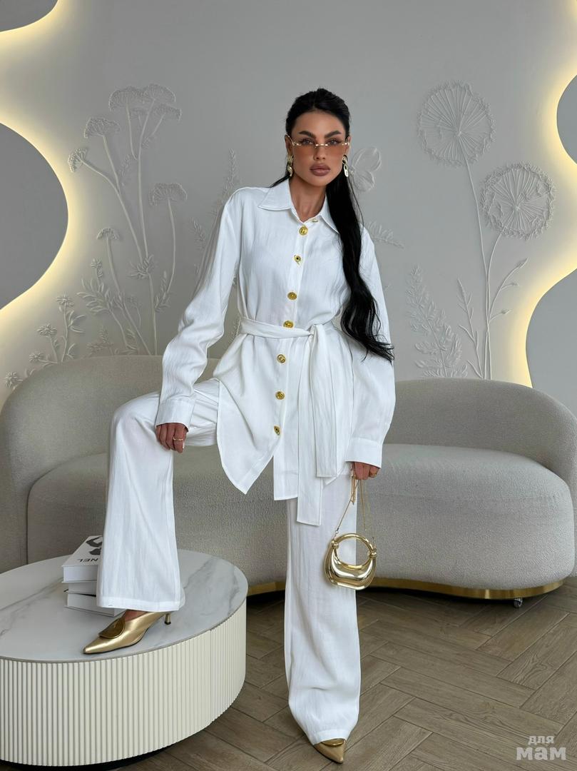Костюм двойка , который идеально подчеркнет все достоинства фигуры , и явно не оставит без внимания.Ткань коттон хлопок. Качество отличное. Длина рубашки по спинке 66 см. Длина рукав от шва 68 см. Длина брюк 115 см. Арт 2370. ЦЕНА 3800 РУБ
