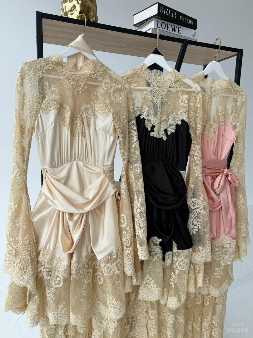 Стильные платья, которые станут настоящим украшением вашего гардероба! Люкс качество, идеально сидит на фигуре!Ткань: гипюр / вискоза. Длина по спинке: 140 см.( на подкладке)