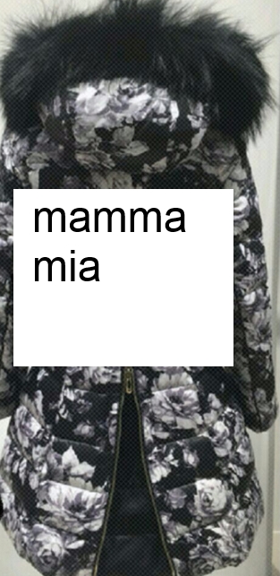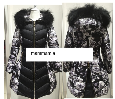 6. Пальто .Спинка в цветы. Впереди просто черное. ХИТ !!!!!! Наполнитель пух,мех енот. Цена 88 дол РАЗМЕРЫ 128-158 3 ряда
