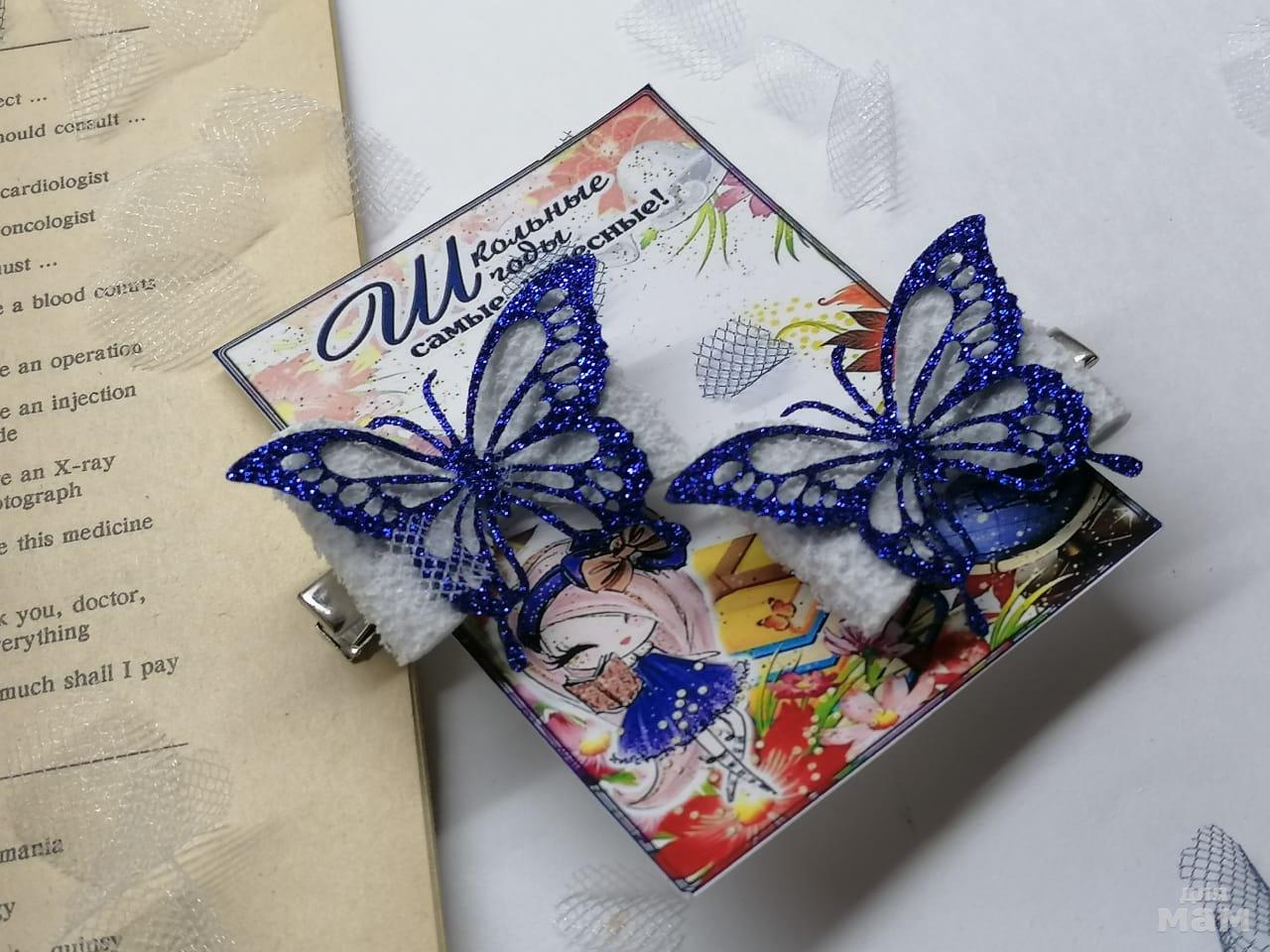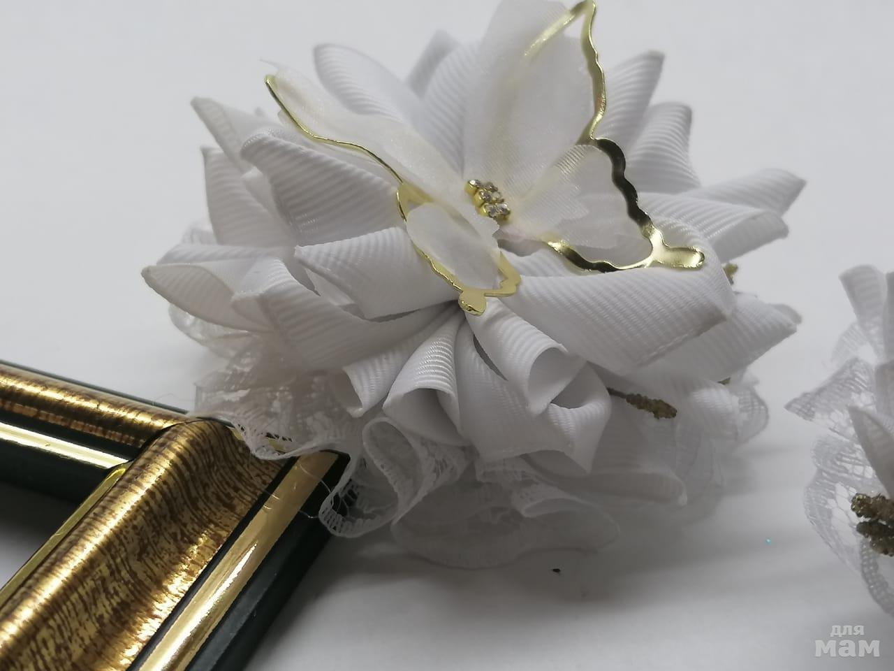 1) Классные невесомые шарики и ювелирная бабочка с шифоновыми крыльями. Кто не любит на 1 сентября огромные банты, то это самый подходящий вариант. Диаметр 7 см. Цветочек пышный, детали на солнце сияют!