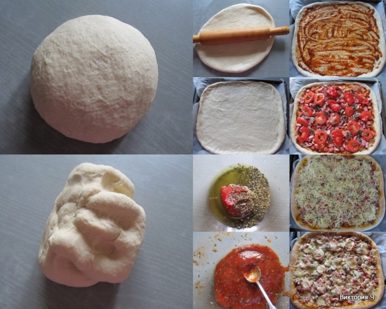 Рецепт теста: (на 1 противень, или две средние, или четыре маленькие пиццы)