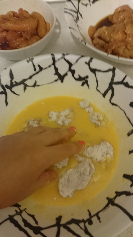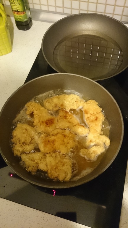 А теперь нагреть масло и обжарить с двух сторон (минутки по 2-3 с каждой стороны, если крылья, то можно минутки 3-4 с каждой стороны)