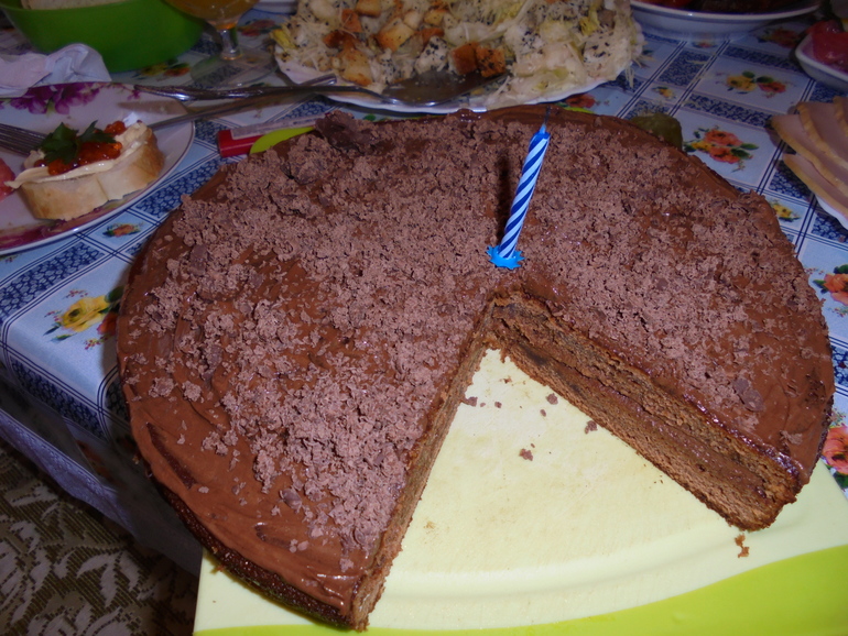 Берем шоколадку Аленка из холодильника или морозилки и натираем на терке. Посыпаем верх торта. ТОРТ ГОТОВ! Лучше на несколько часов убрать в холодильник, чтобы пропитался, но не обязательно.