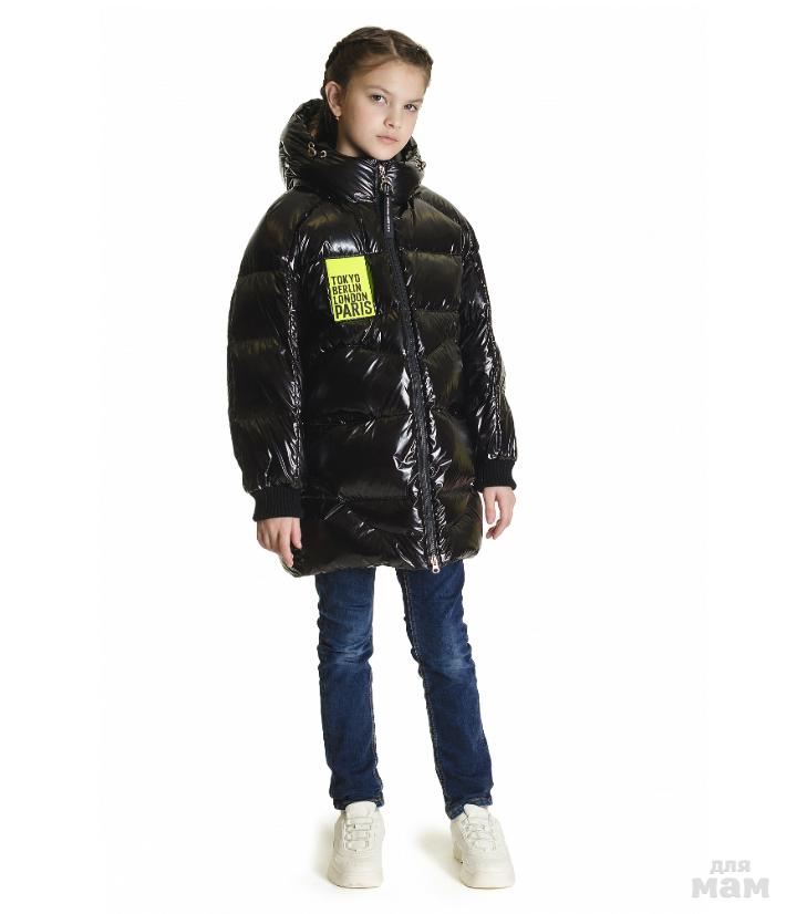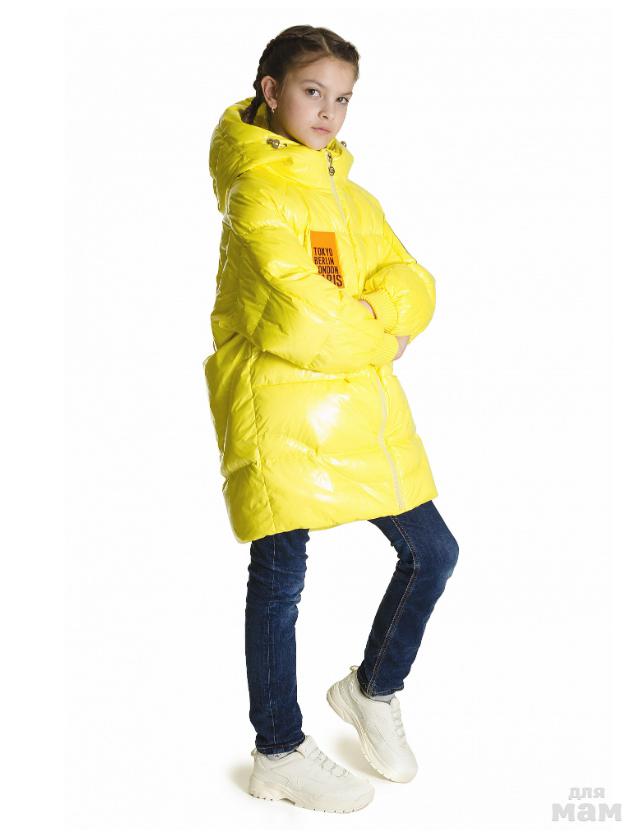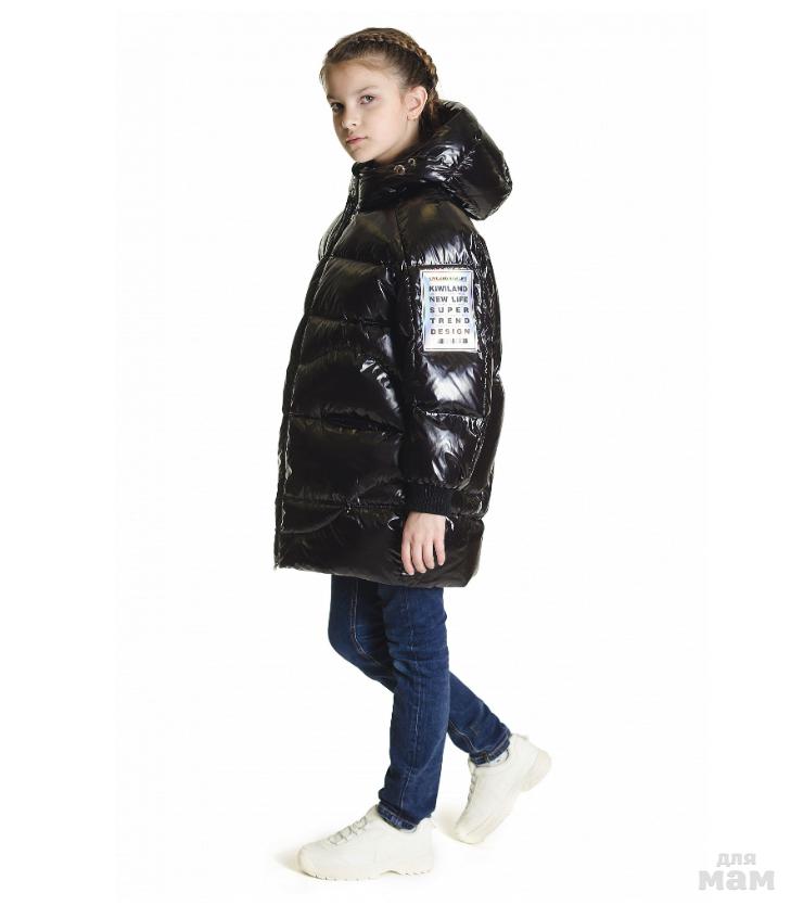Удлиненная куртка на девочку прямого силуэта..Застежка центрально-бортовая на двухзамковой молнии.Комбинированный рукав ,низ рукава закончен манжетом риб.Капюшон втачной двухшовный с функциональной кулисой .Карманы потайные,мешковина кармана выполнена из флиса. По нижней части изделия расположена потайная функциональная кулиса. Стан подкладки выполнен из флиса.