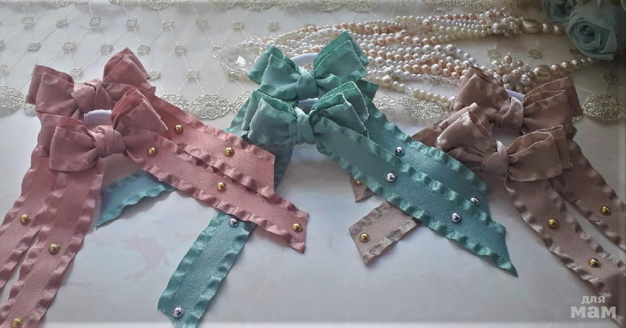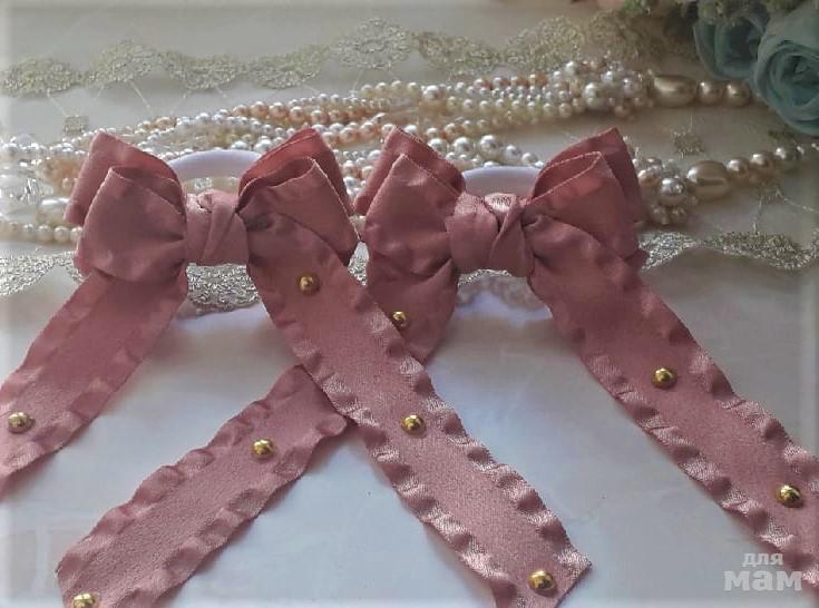 3. Бантики из сатиновой ленты, цвет пудровый, мятный и бежевый. В наличии 3 пары, 380 руб.\пара