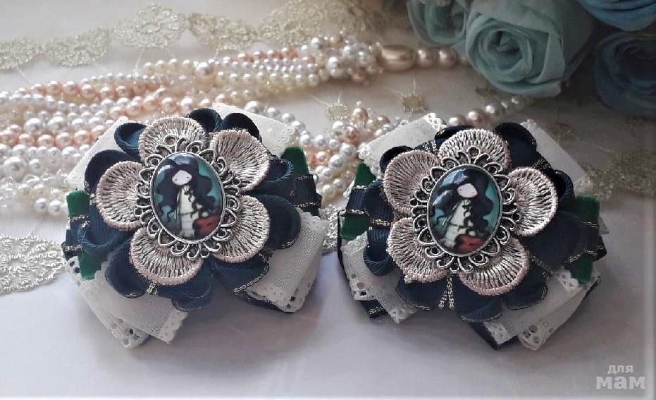 4. Классические бантики в молочном цвете с украшением "Камея", 500 руб пара