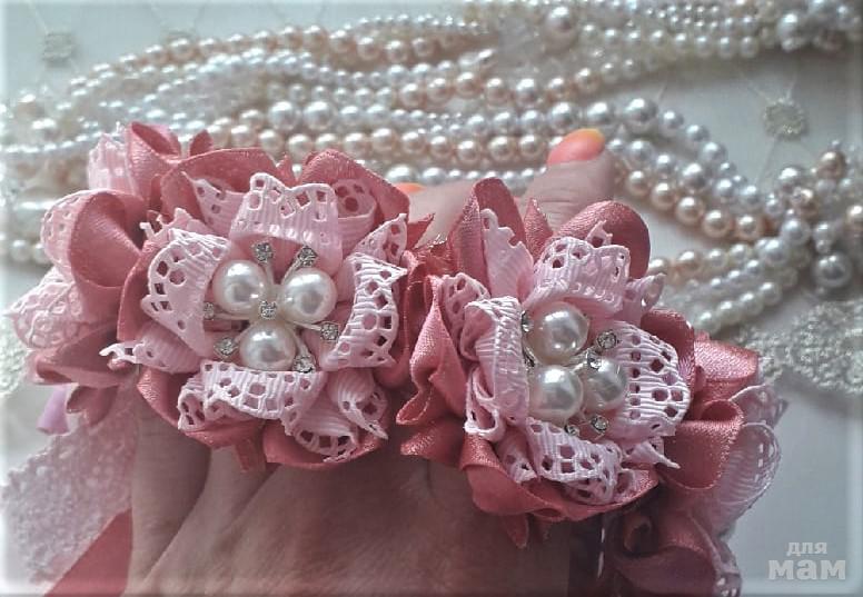 (Были использованы материалы: сатиновая лента с люрексом, ажурная лента, ювелирные серединки 6 шт, кружево, кожа, резинка и много труда)