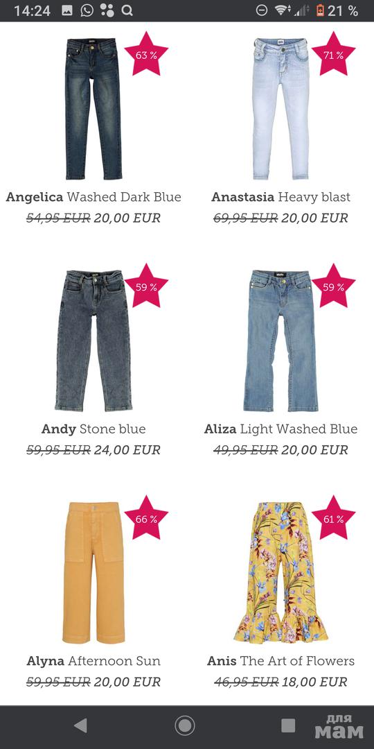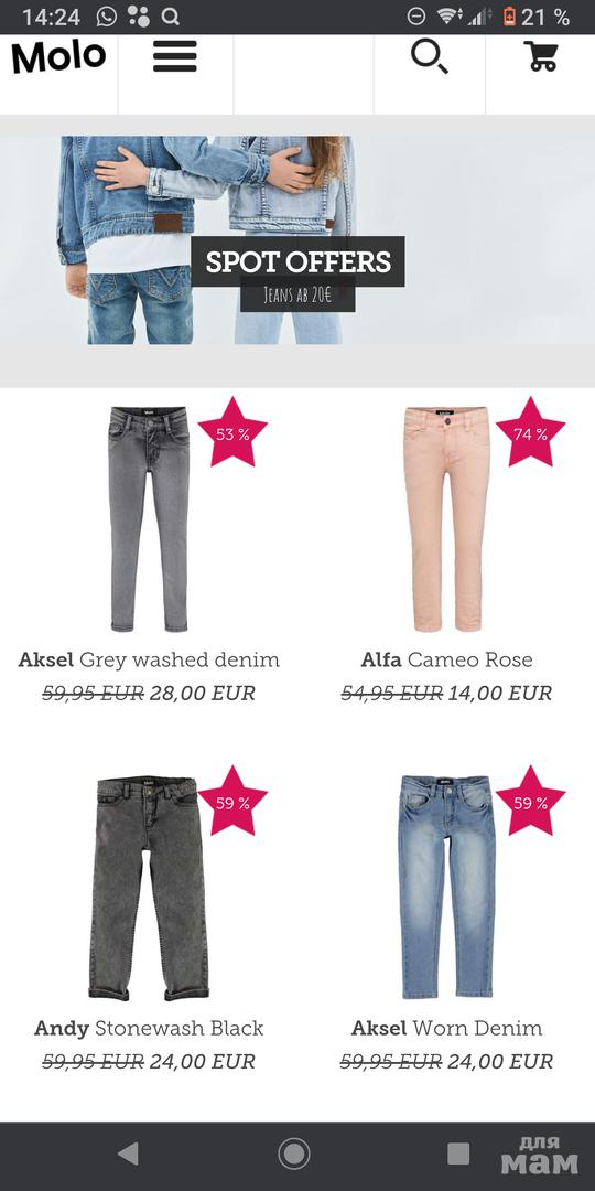 Акция на Molo джинсы и брюки 14-20 евро .Выкупаем в СП , орг 5%+10%