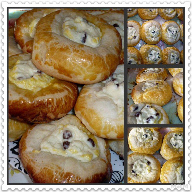 Плюшки кладём на смазанный маслом противень и даём тесту подняться. Затем смазываем желтком и отправляем в духовку. Следите за булочками, они очень быстро пекутся и если не уследите сахар может сгореть.