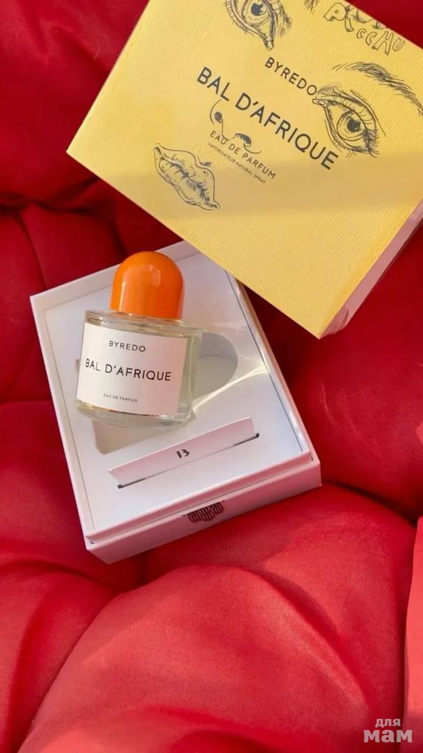 Bal d'Afrique Byredo — это аромат для мужчин и женщин, он принадлежит к группе восточные древесные. Bal d'Afrique выпущен в 2009 году. Парфюмер: Jerome Epinette. Верхние ноты: Лимон, Бархатцы, Черная смородина, Бергамот и Африканский апельсиновый цвет; средние ноты: Фиалка, Цикламен и Жасмин; базовые ноты: Ветивер, Амбра, Мускус и Вирджинский кедр.
