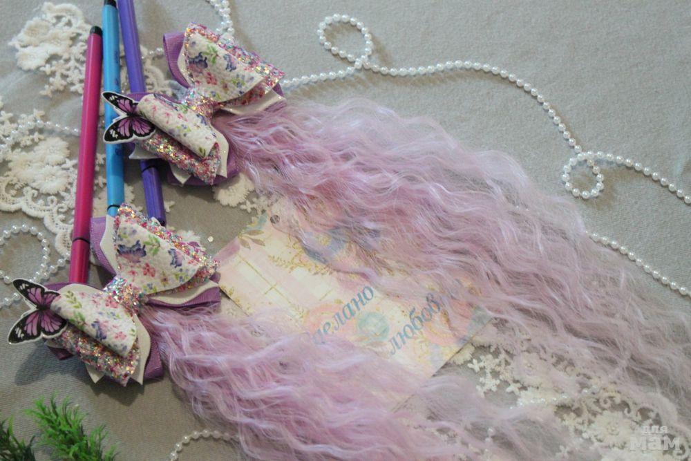 бантики с прядками градиент, переходят в нежно-розовый