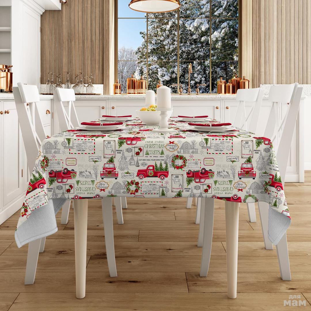 Скатерть из 100% хлопка. Раскрой скатерти выкроена из купонной ткани. Обработка скатерти выполнена с евроуглом и обработана швом в подгибку с закрытым срезом шириной шва 2 см. Упаковка: в индивидуальный короб + фотовставка
