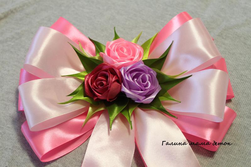 маленькие бантики на зажимчиках. в дальнейшем можно использовать как заколочки.