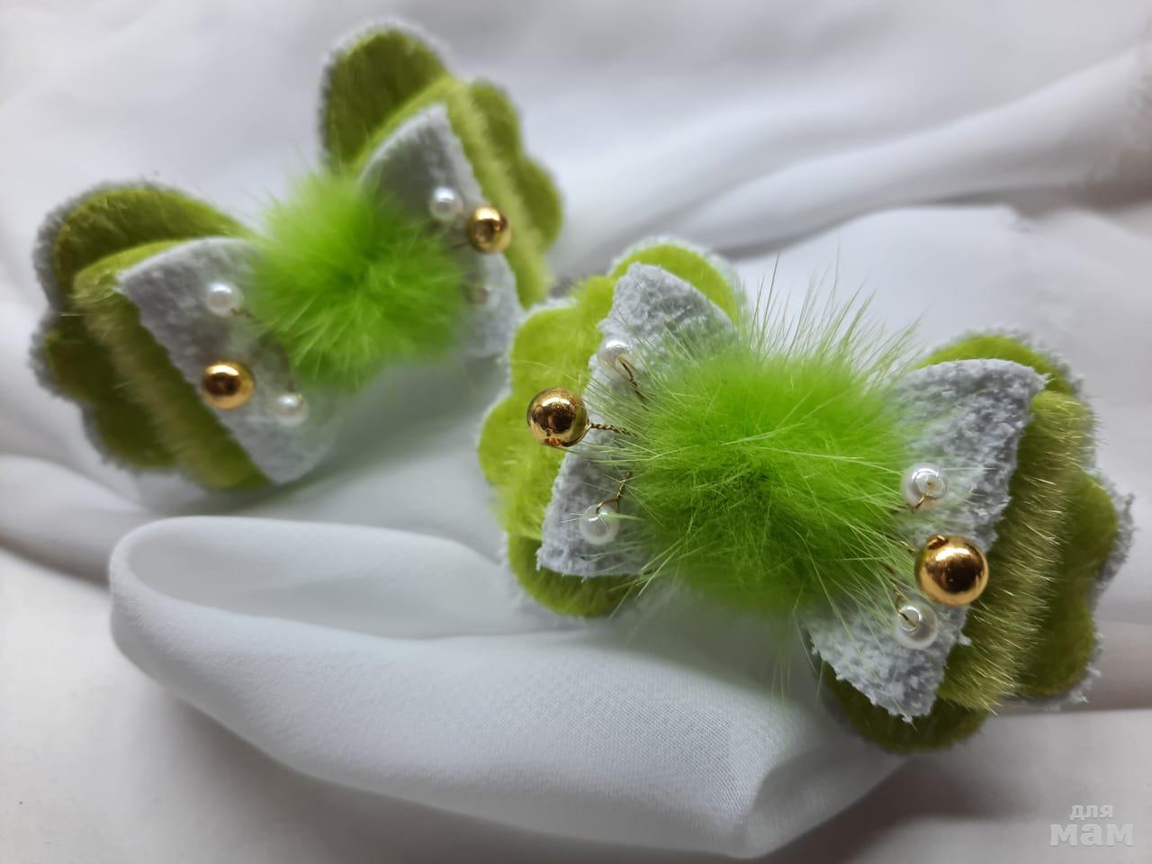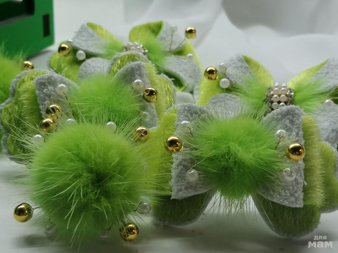 10) Не бархат, мех, но что-то в нем есть такое тактильно похожее и...так весну напоминает. Когда первая зелень, нежные лучики, а аромат пробуждающейся природы. Все бусинки на проволочке "с памятью", т е можно гнуть и моделировать как угодно. Все бантики на резиночках. Комбинируйте и создавайте прически всевозможными способами.