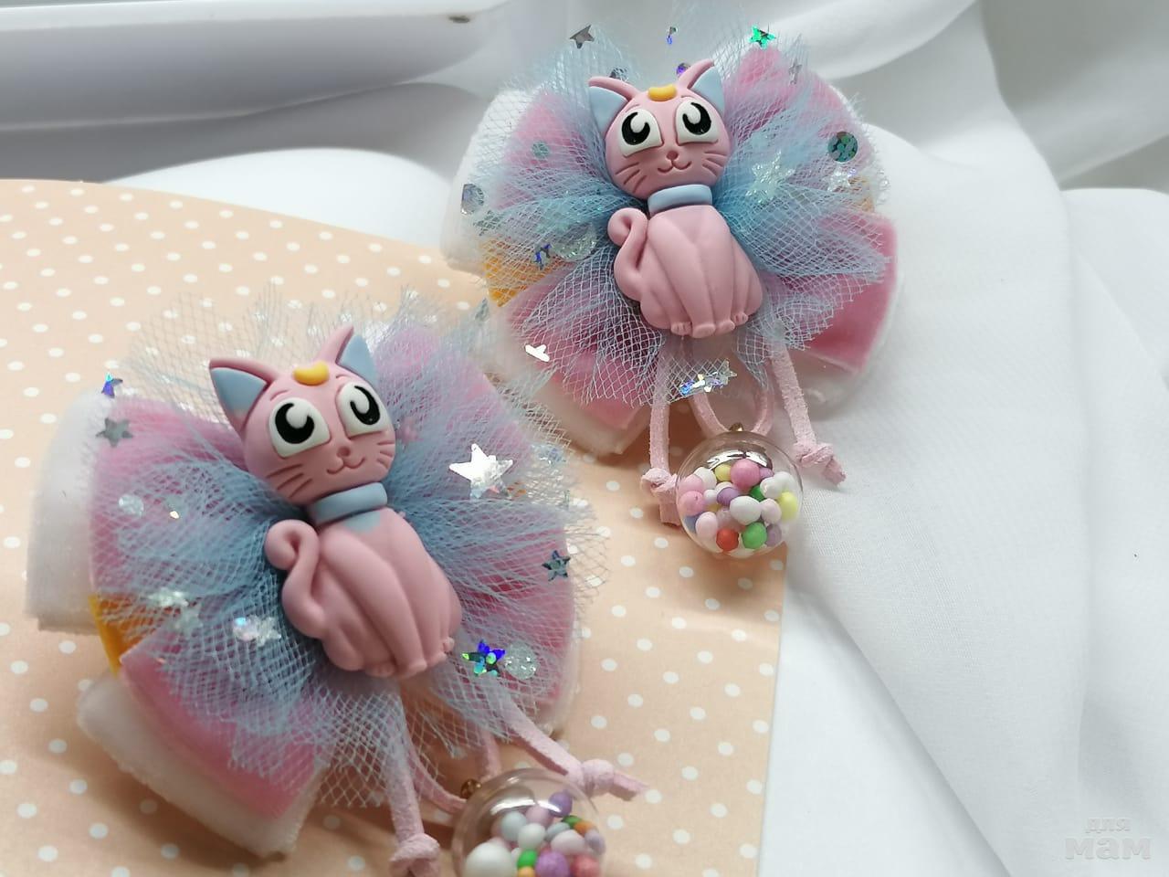 2) Сегодня будет много кошек. Вот и эта мурлыка поселилась на таком одиноком бантике. Отличный вариант для любителей одного хвостика или косички.