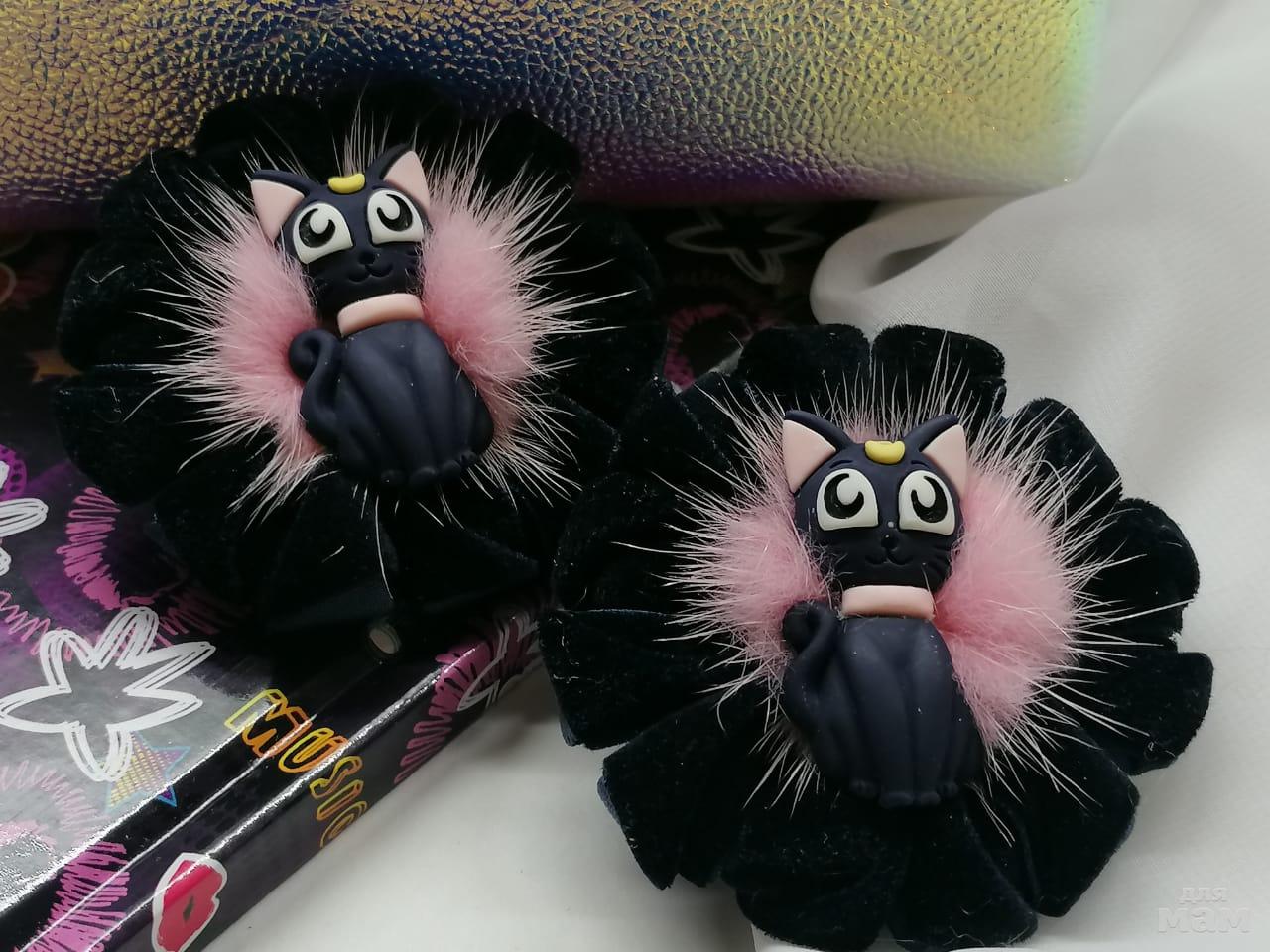 3) Продолжаю показывать кошек. В этот раз универсальный вариант - и на выход под наряд, и под школьную форму. Цвет кошки и бархата ТЕМНО-СИНИЙ!