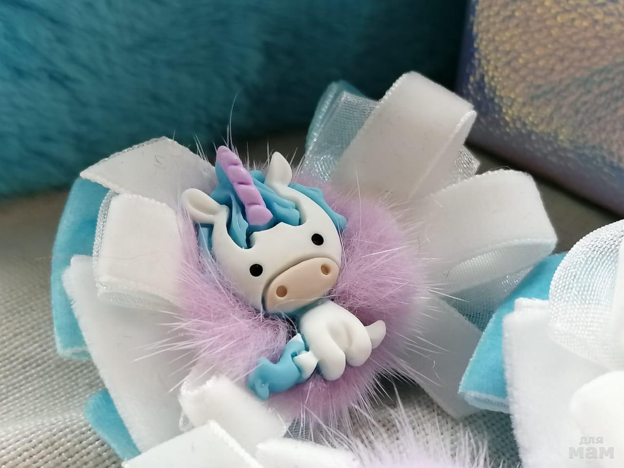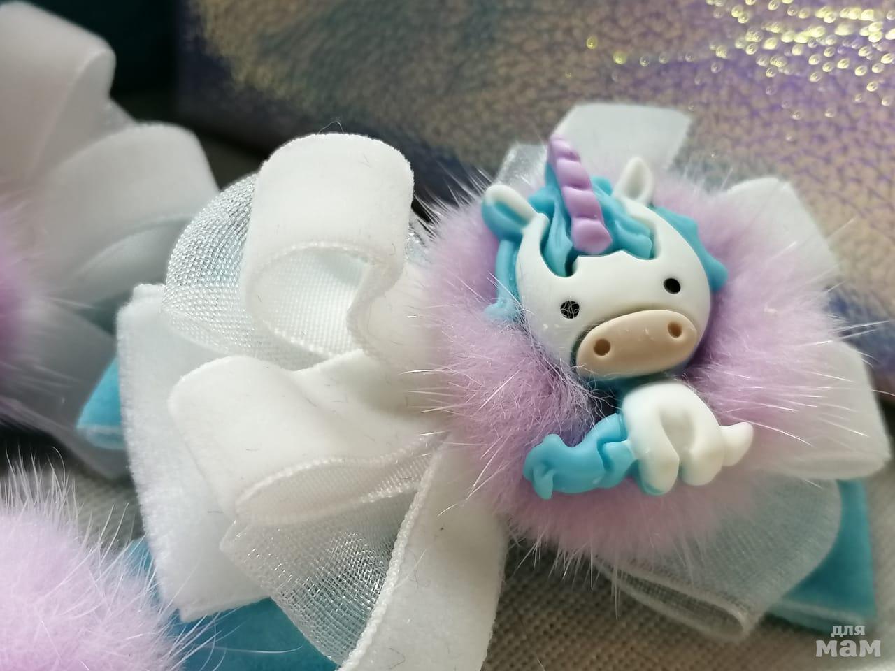 2) Набор с единорожкой в нежных пастельных тонах. Два бантика и одна заколочка.