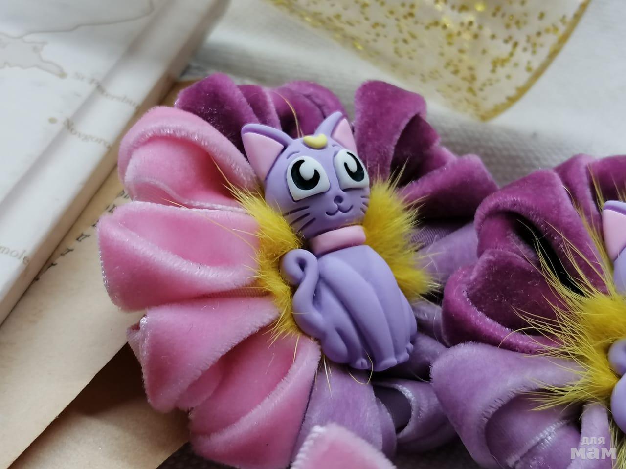 1) Начну с кошек и самого модного цвета 2022 года. Самое выигрышное сочетание любых оттенков сиреневого и желтого. Разбавила еще розовым, чтобы бантики были универсальными.