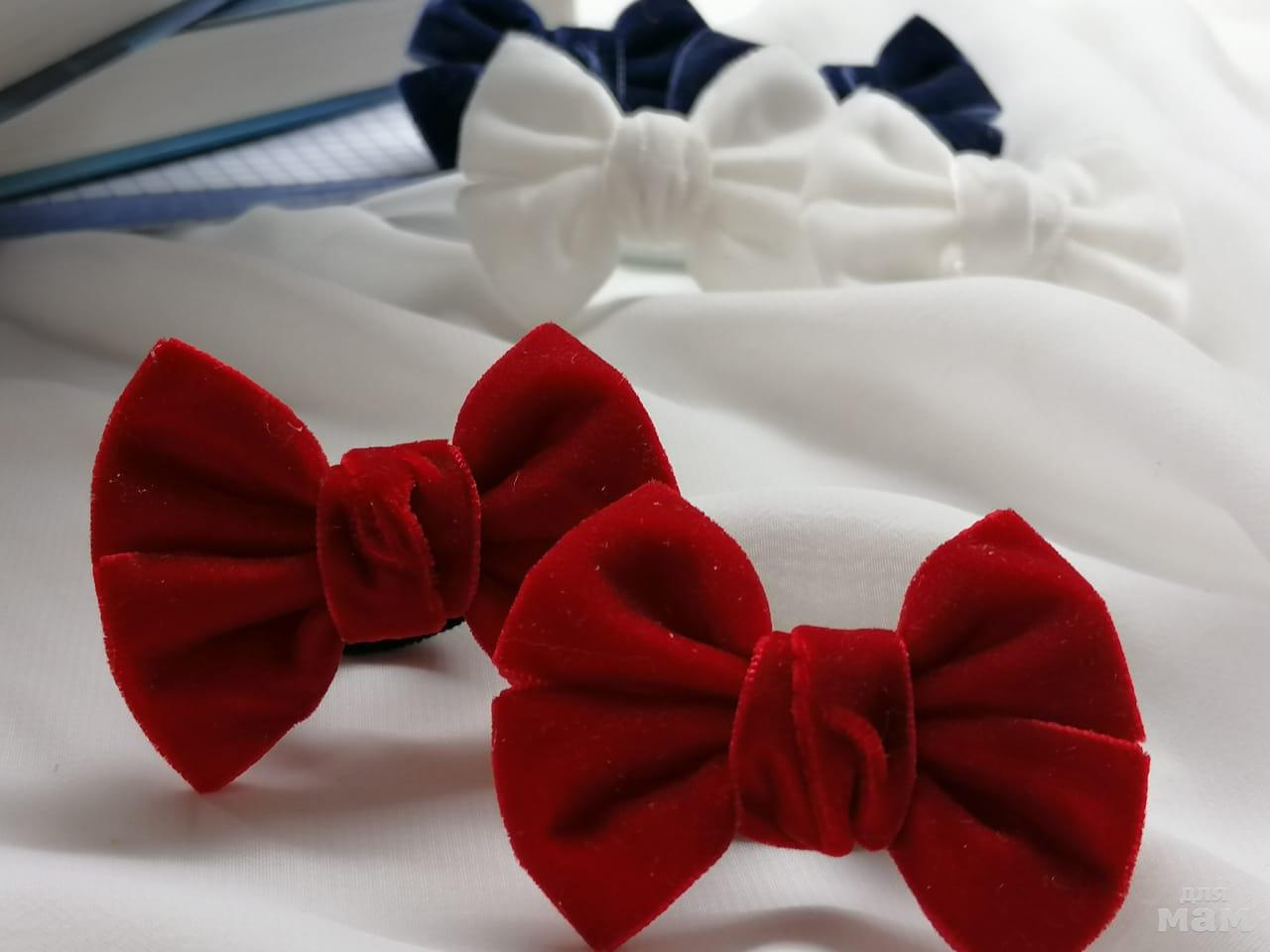 8) Набор бархатных школьных бантиков под темно-синию форму.