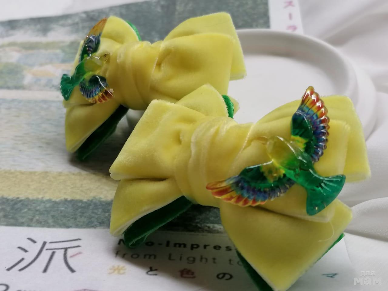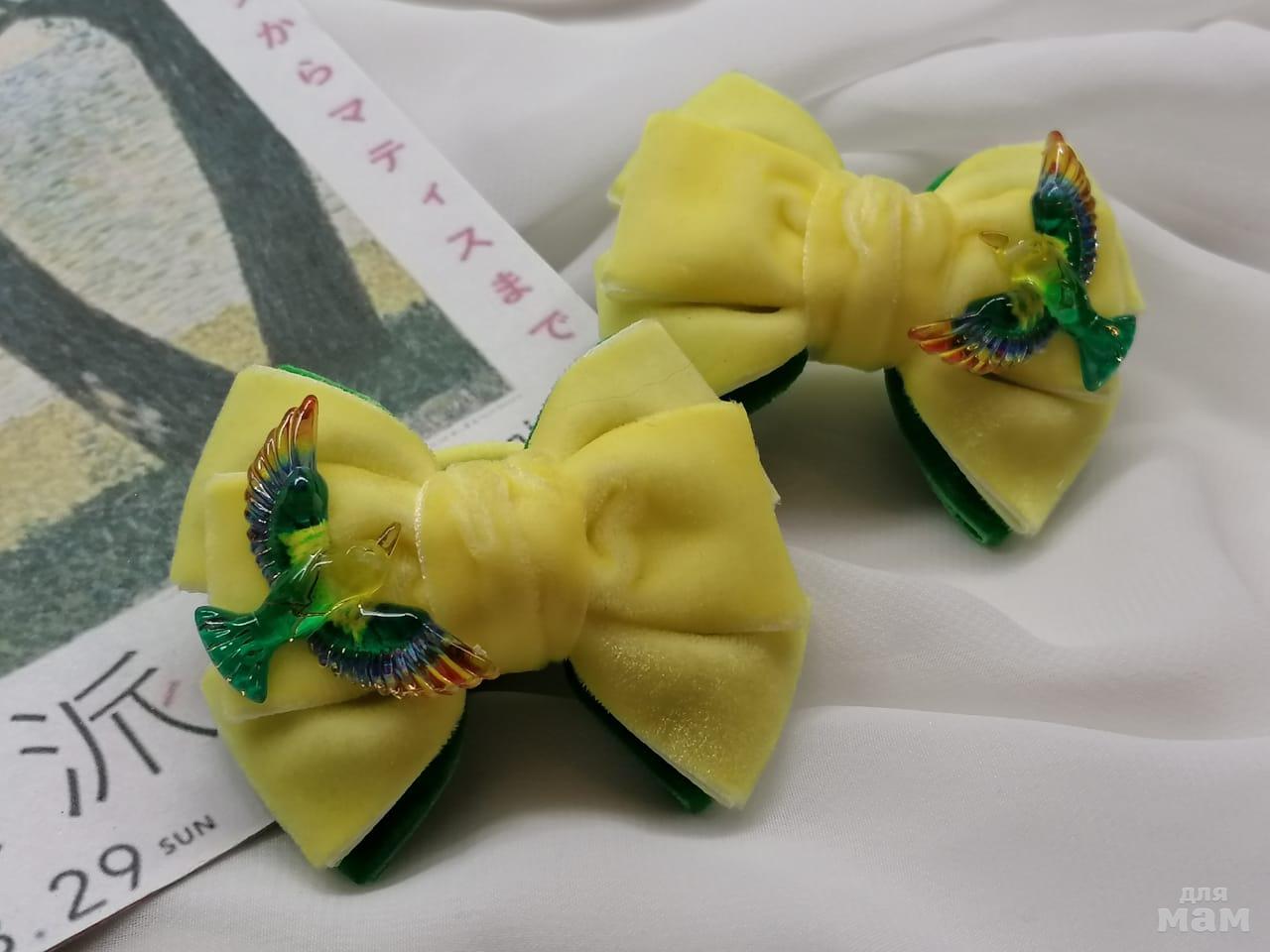 Тут фото чуть исказило настоящий оттенок желтого, он в реале более спокойный. К бантику в подарок классные резиночки.