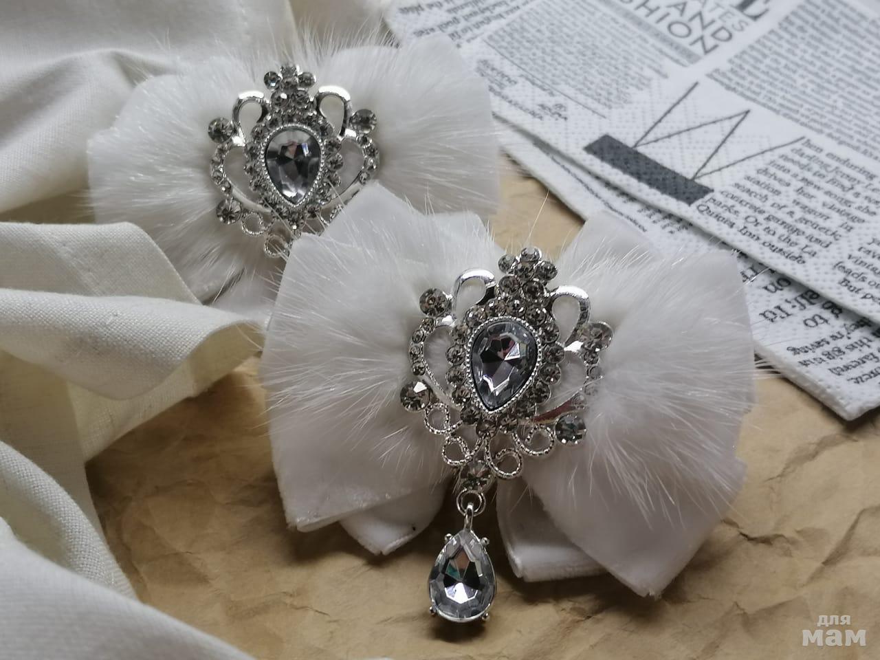 3) Роскошные белые бархатные бантики с шикарной норкой и очень крутой серединкой. Смотрятся безумно нарядно.