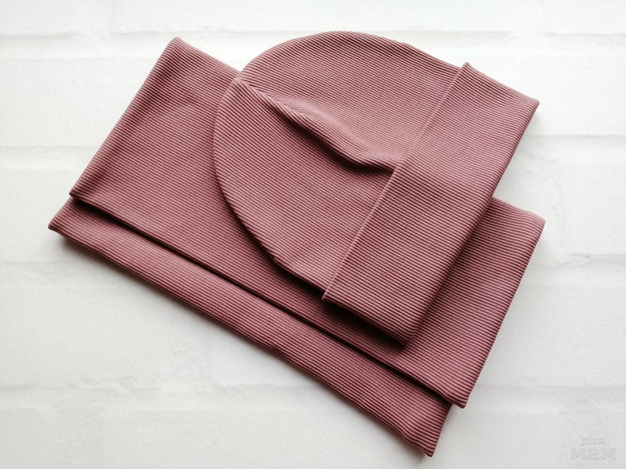 Снуд и шапочка в цвет пыльно лиловый