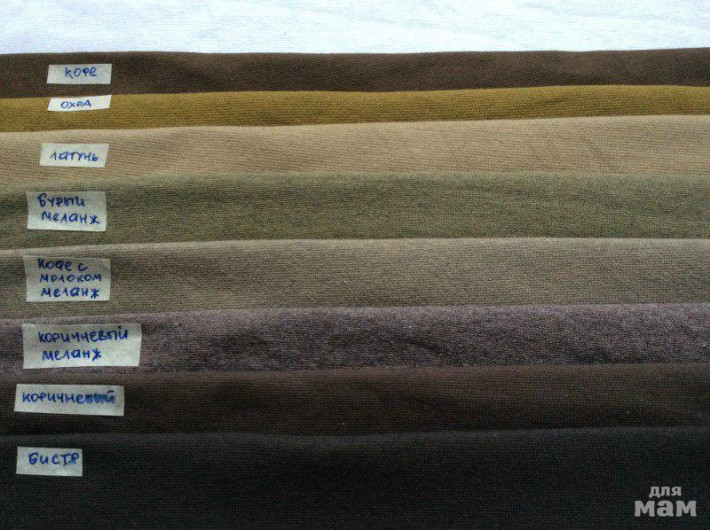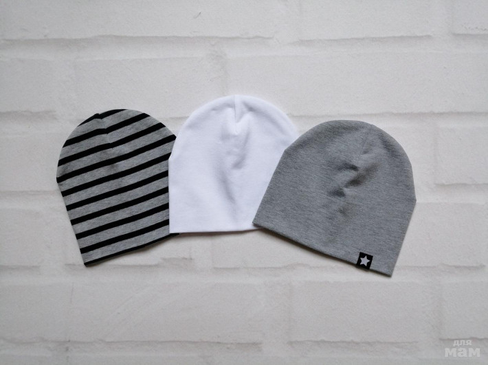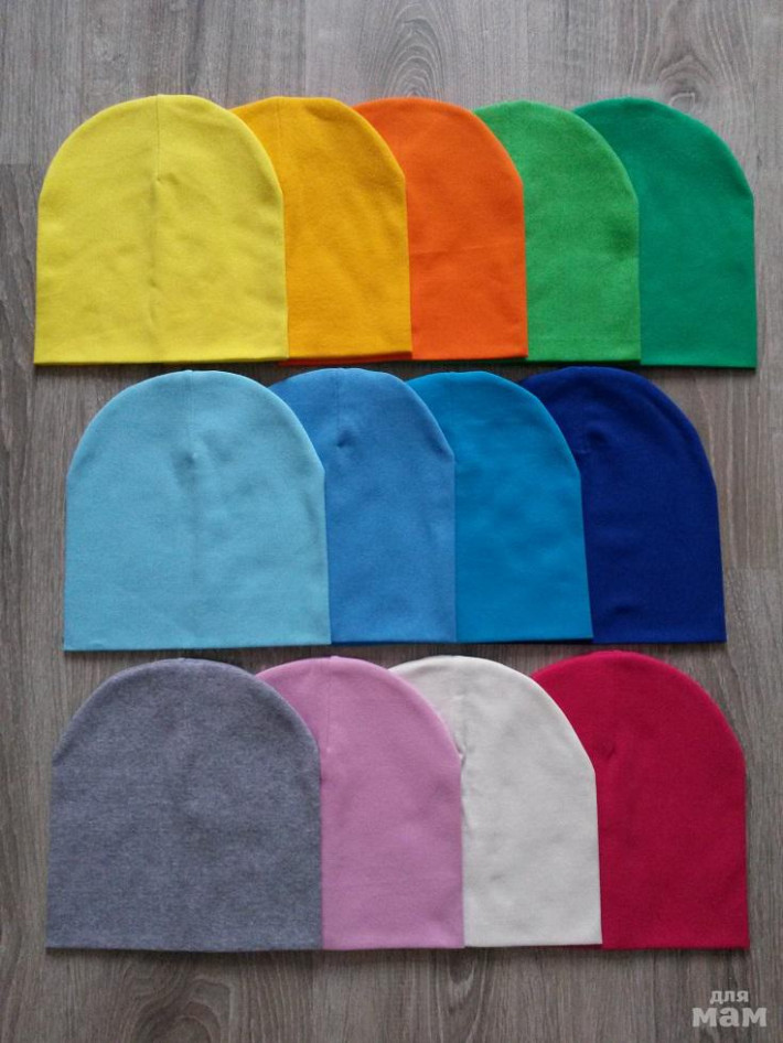 Расцветок много. Выбрать подходящий можно по номеру или по названию трикотажа. Есть шапочки с нашивкой и без нее. В заказе уточняйте, какие нужны.