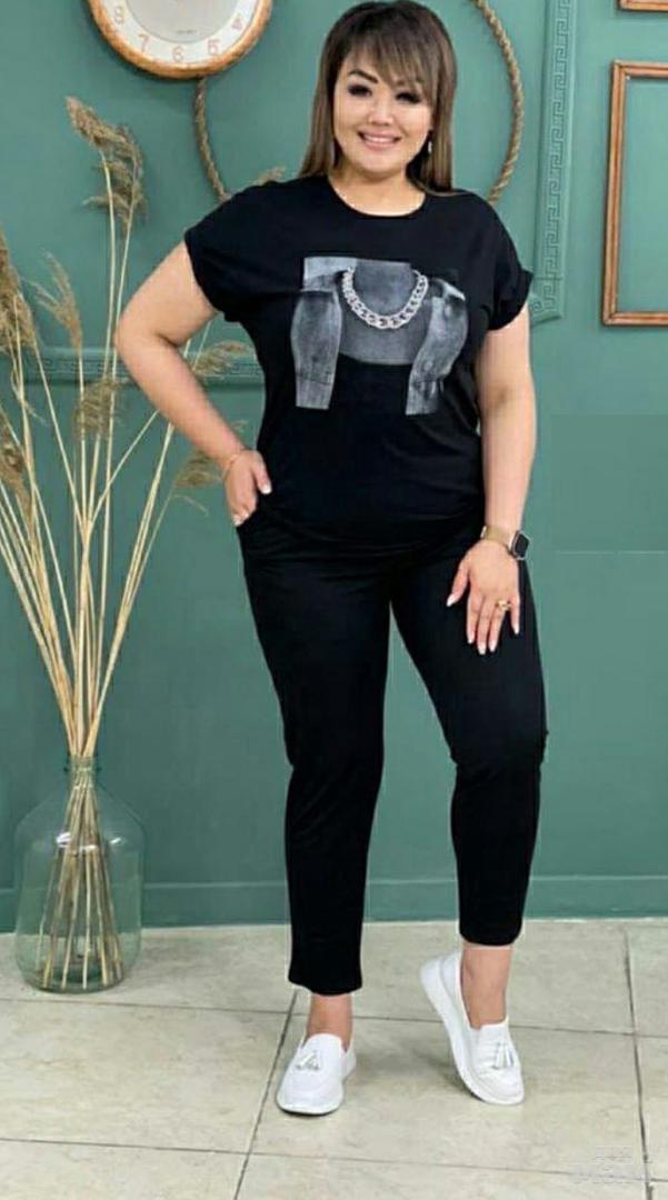 Длина футболки - 65 см, Ткань - трикотаж, Брючки ткань - Сингапур
