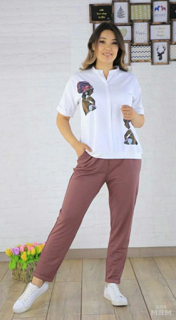 Длина футболочки - 62 см. Ткань - трикотаж Брючки на резинке с кармашками