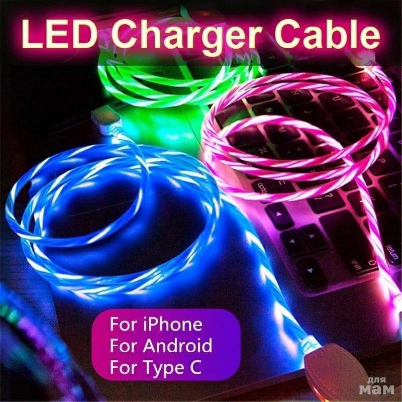 Магнитный светящейся провод для быстрой зарядки 3в1.:::::::::Type-C . Micro USB.Lightning iPhone