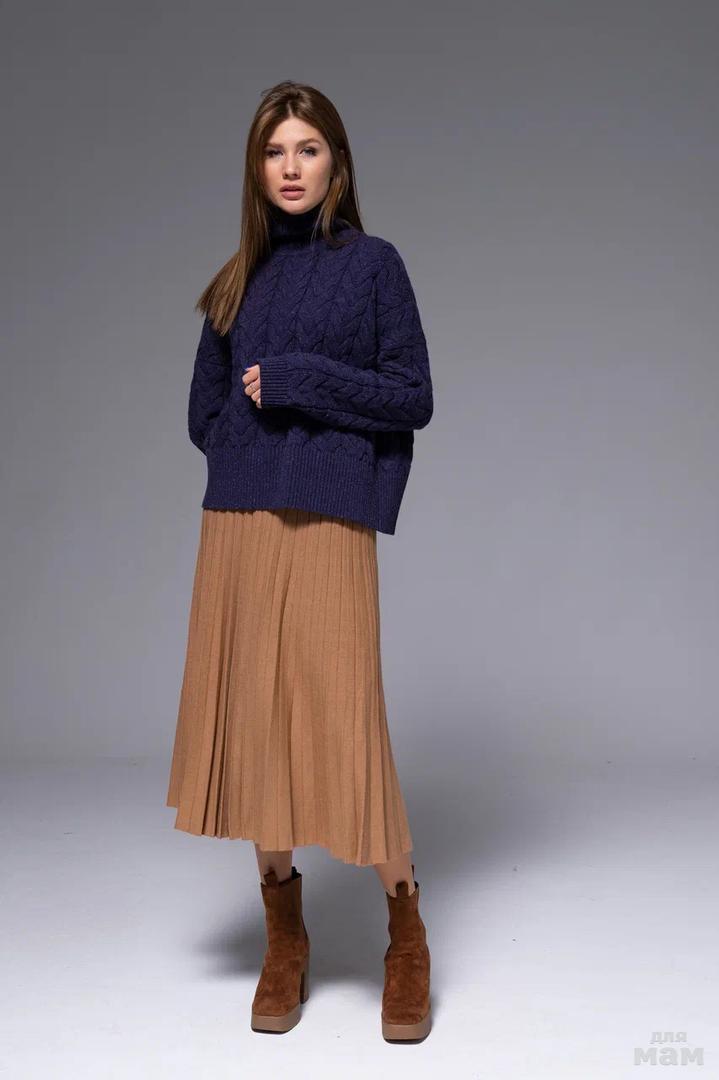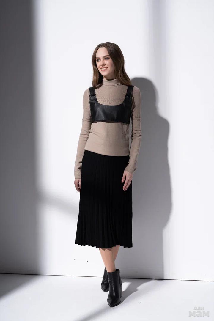 юбка 8229 беж.черная.Шерсть мериноса, акрил, кожа
