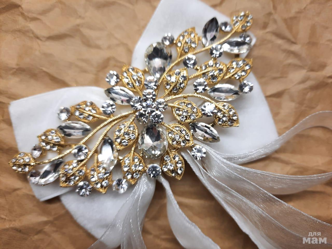 Украшение - как шикарная бабочка!! Бант хоть на гулю, хоть на распущенные или хвост/косу. Сам по себе уже сделает образ очень нарядным. На выход. При желании можно нити золотые добавить с бусинами.