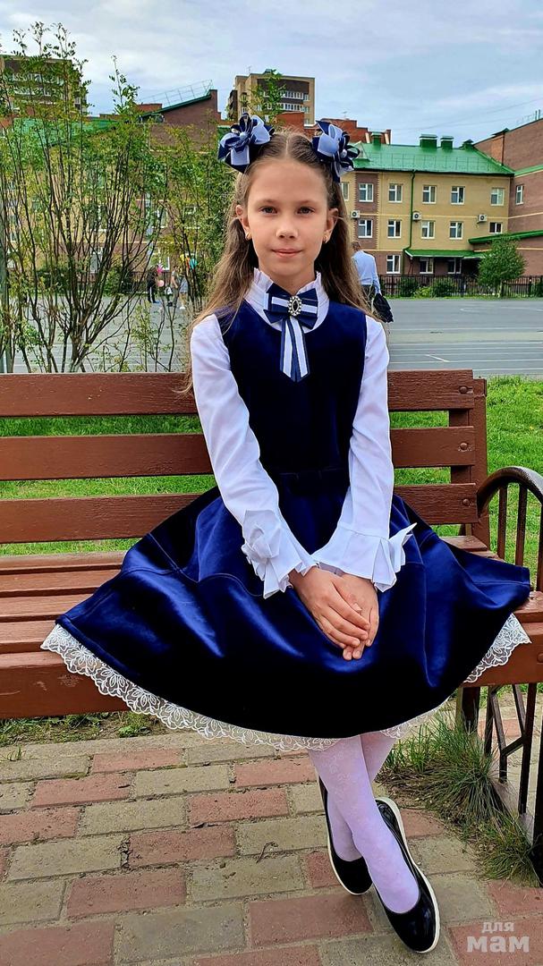 Дочь на фото в бархатном сарафане "Стильняшка "и в блузке "Стильняшка".