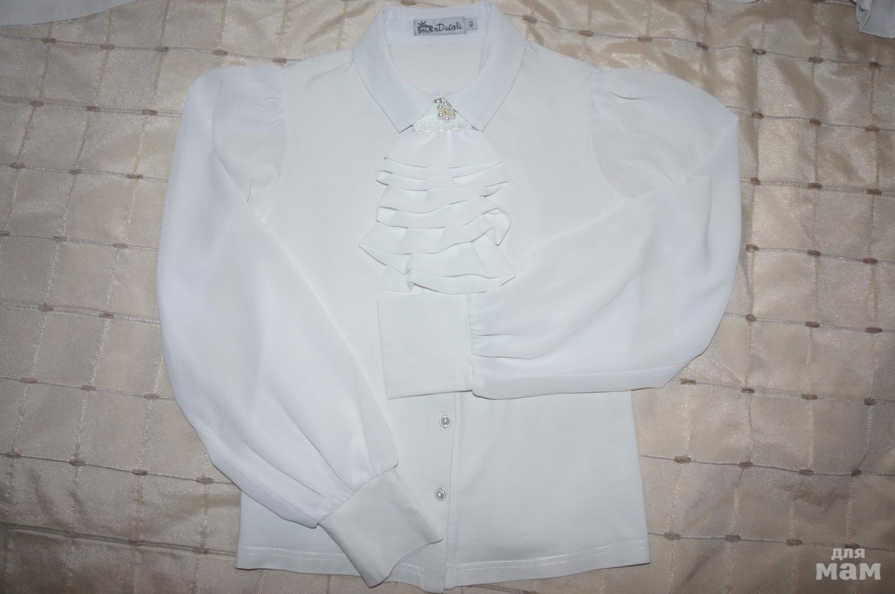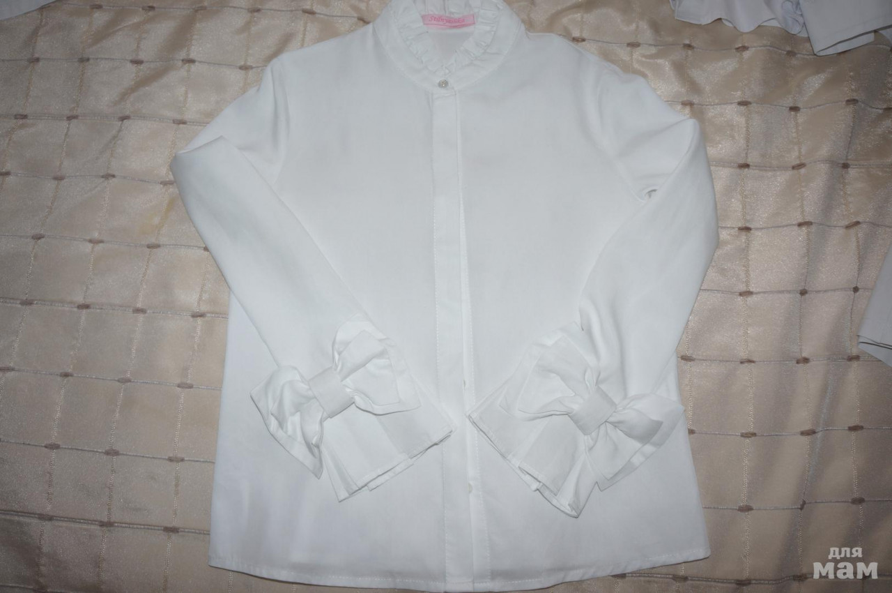 4.Блузка белая Nota bene Р.146с красивым жабо , сзади трикотажная спинка ,удобная . 1200 руб.В идеале! ПРОДАНА!