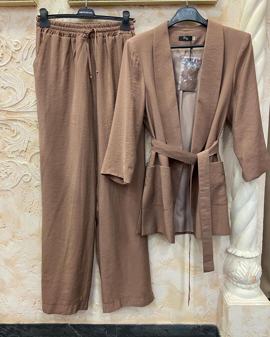 Великолепный костюм на лето в цвете молочный шоколад 46-48 размер