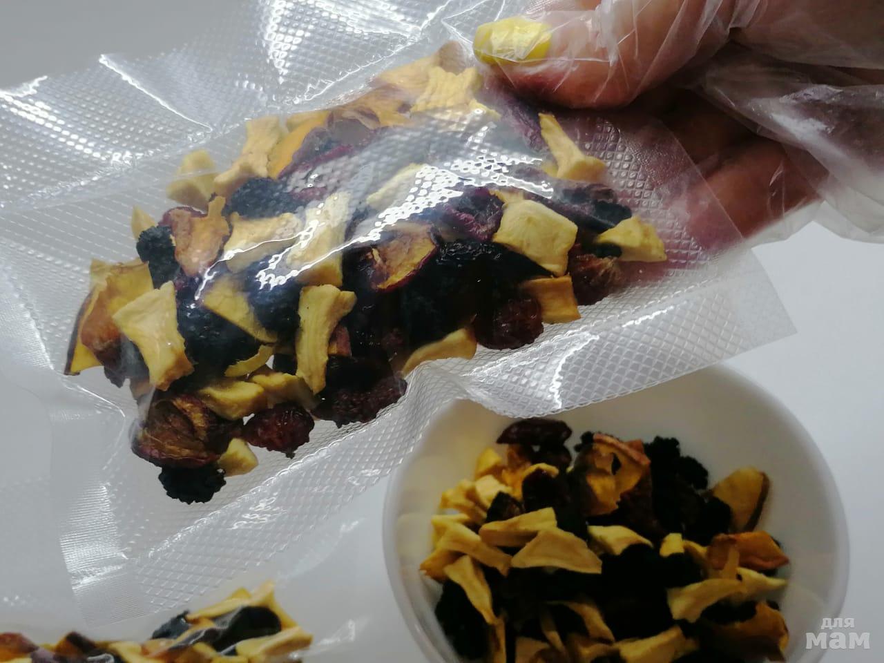 1) Можно полностью сделать вакуум. Плюсы - такой метод позволяет хранить до года и больше. Воздух полностью исключен. Порча продукта практически сведена к нулю. Кто в походы, в поездки - палочка выручалочка для вас. Но есть минус, ягодки прилипают друг к другу. На вкус не влияет, естественно, но эстеты не одобрят)