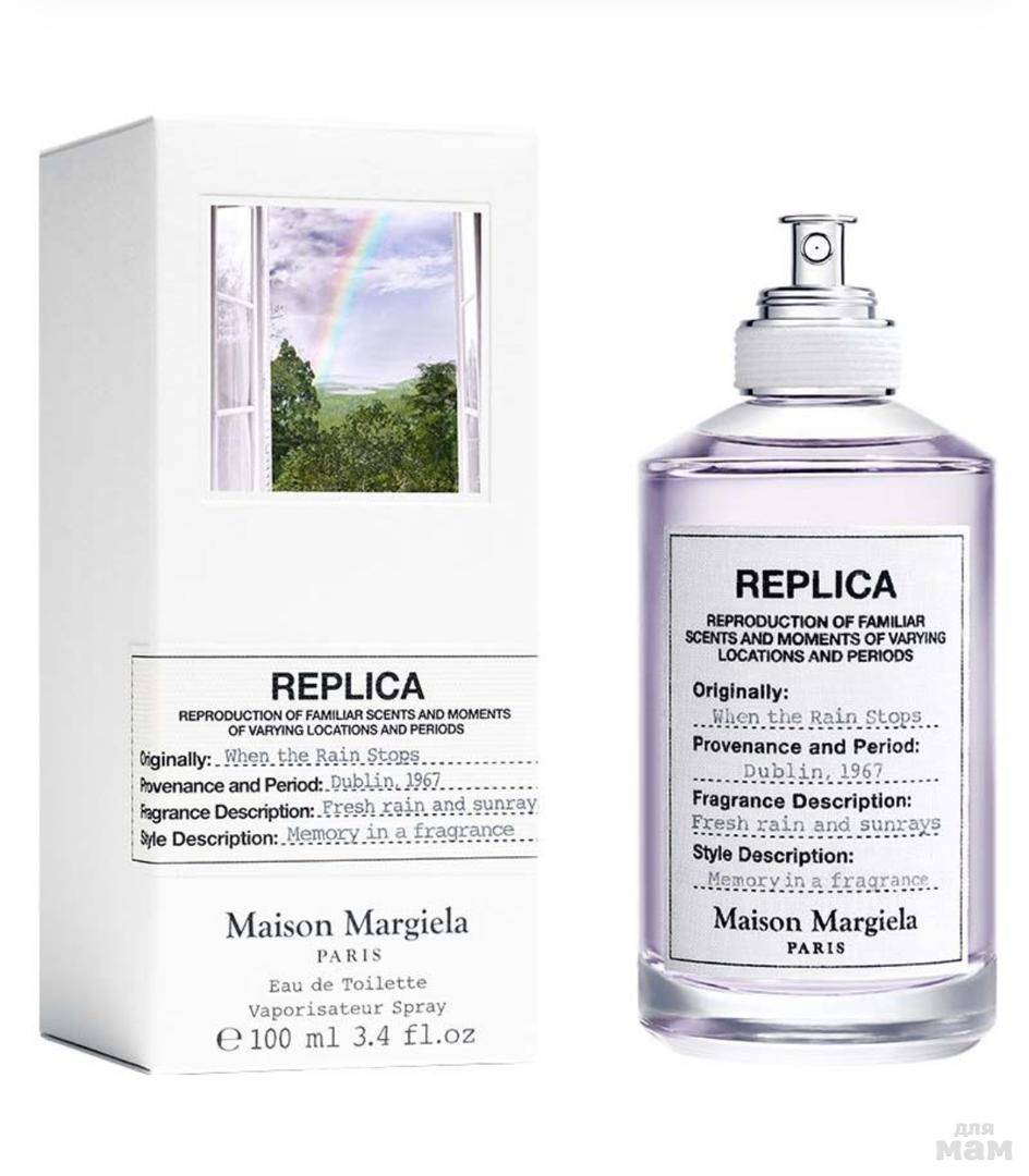 Maison Martin Margiela — это аромат для женщин, он принадлежит к группе фужерные водяные. Это новое издание: When the Rain Stops выпущен в 2021 году. Парфюмер: Fanny Bal. Верхние ноты: Зеленые ноты, Розовый перец и Бергамот; средние ноты: Водные ноты, Нота дождя, Турецкая роза и Жасмин; базовые ноты: Сосна, Мох и Пачули