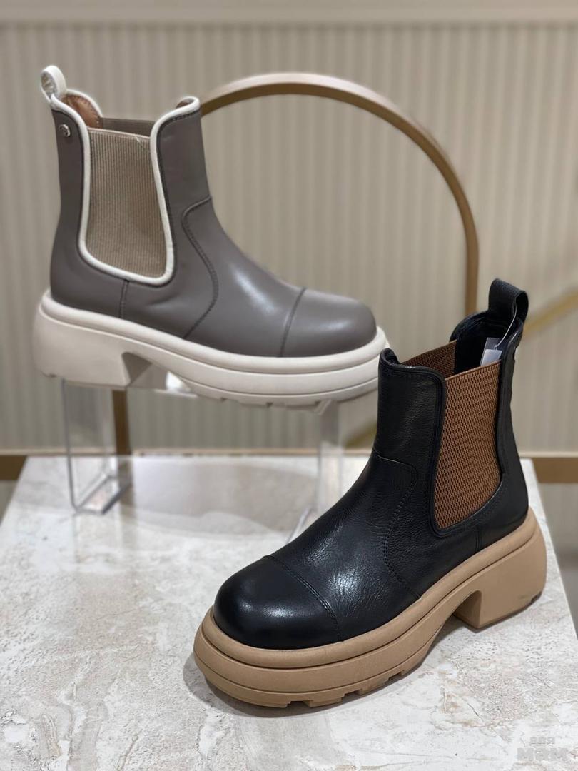 чёрная кожа с беж подошвой без меха