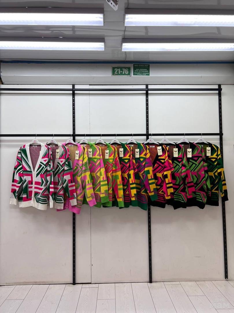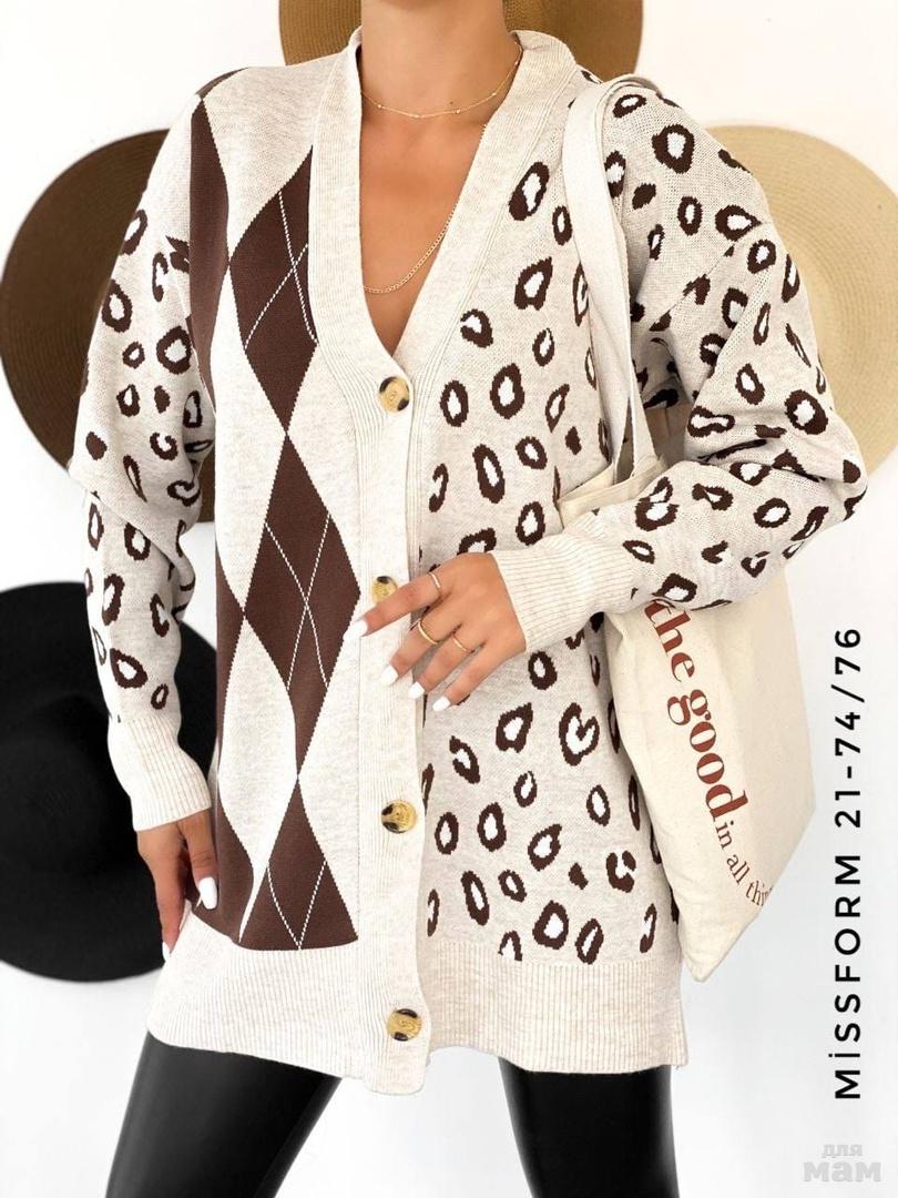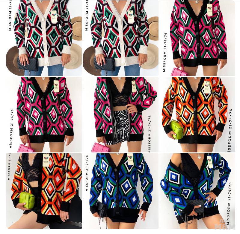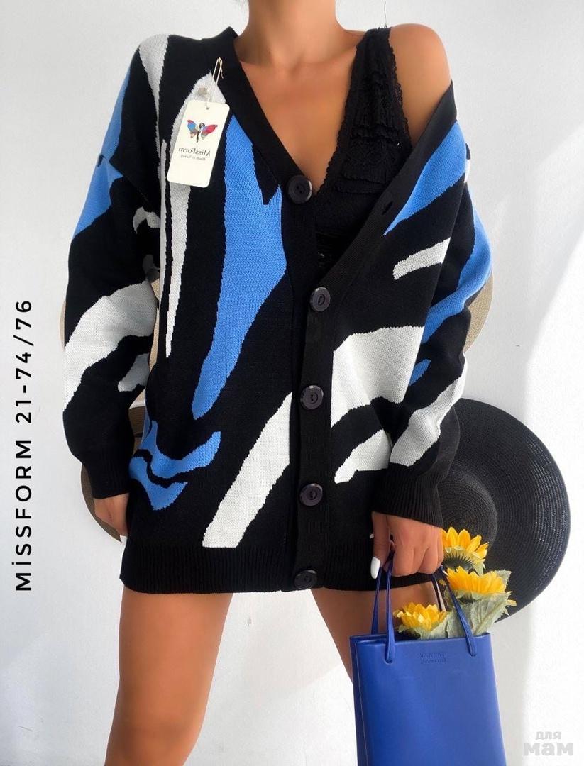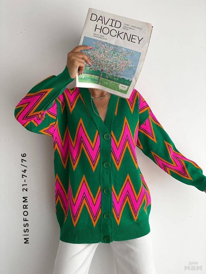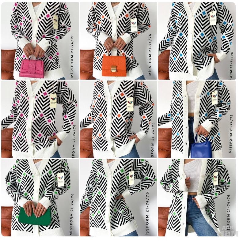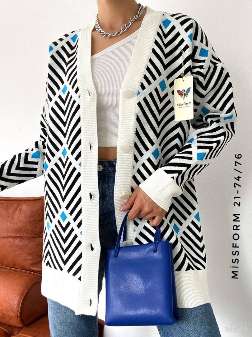 Новая модель кардиганов с геометричным принтом и цветной окантовкой