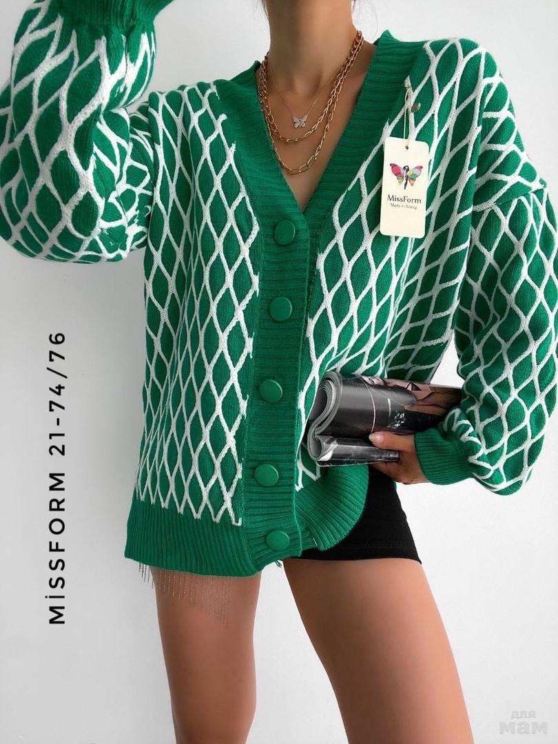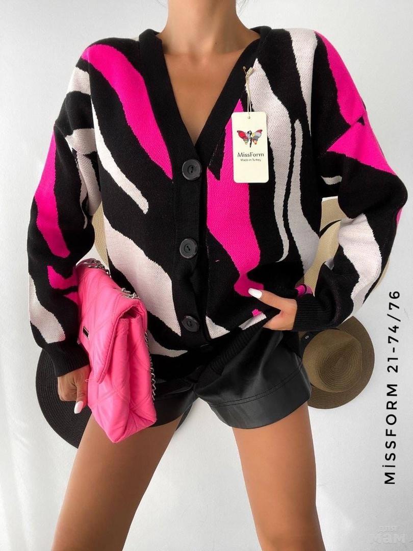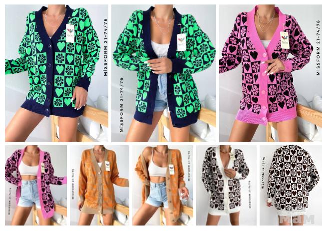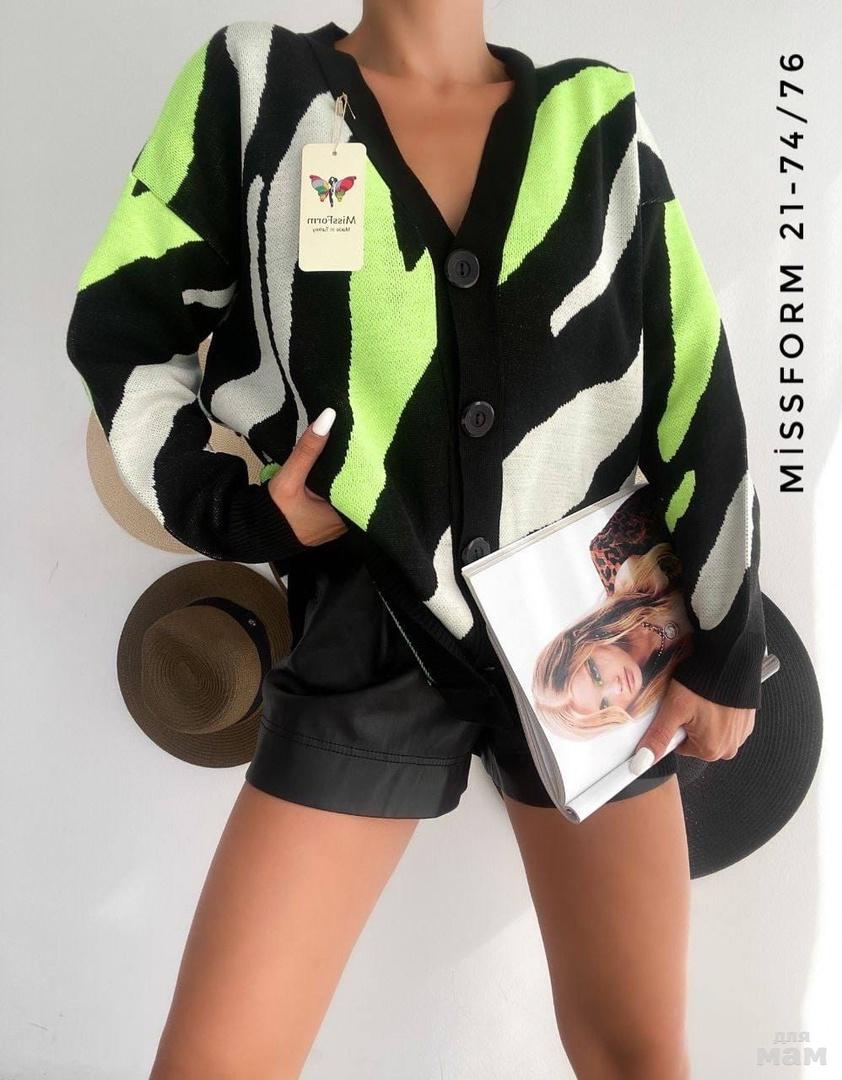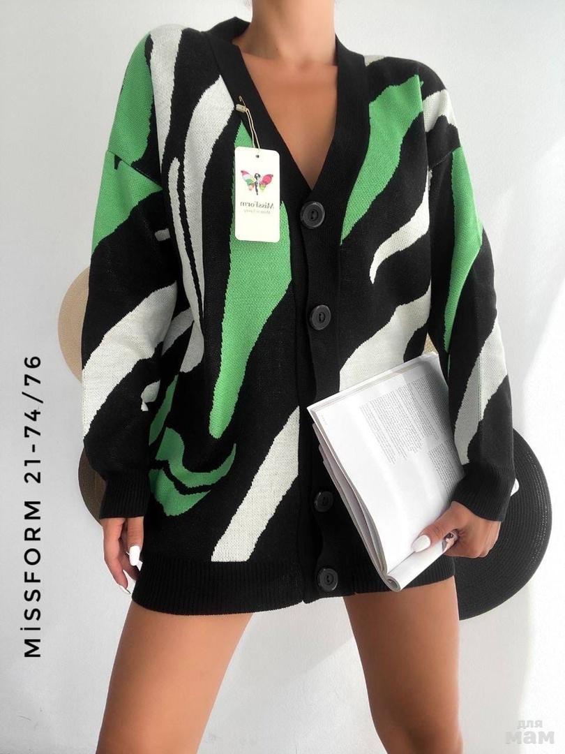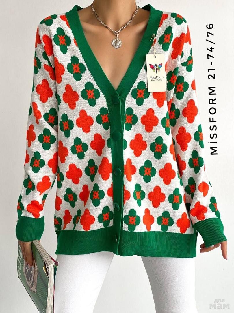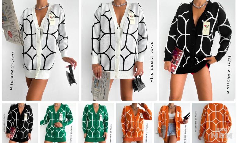 Новая модель кардиганов с геометричным принтом и цветной окантовкой