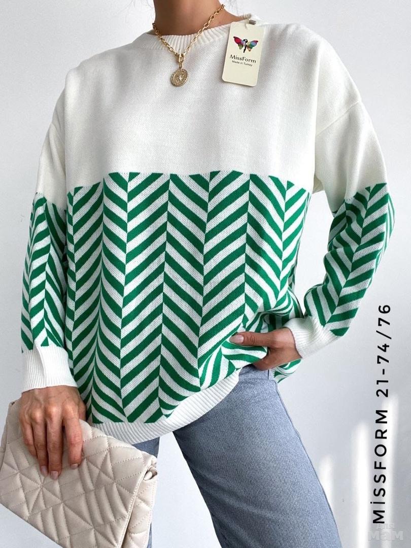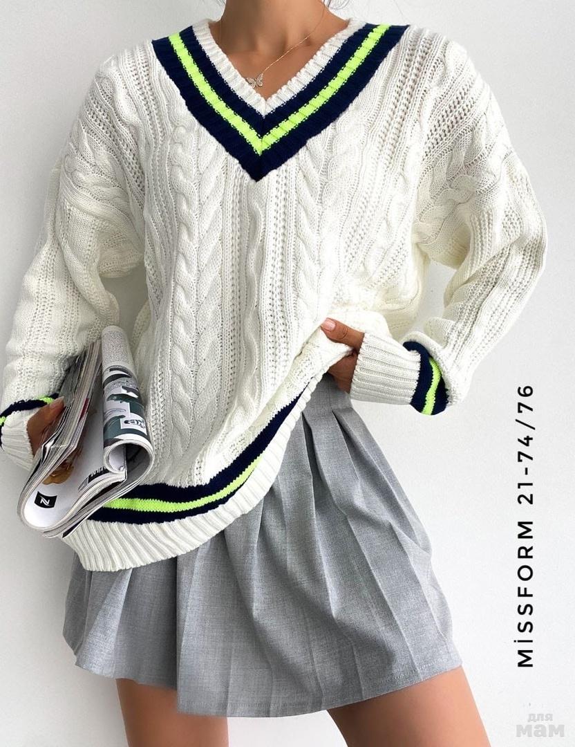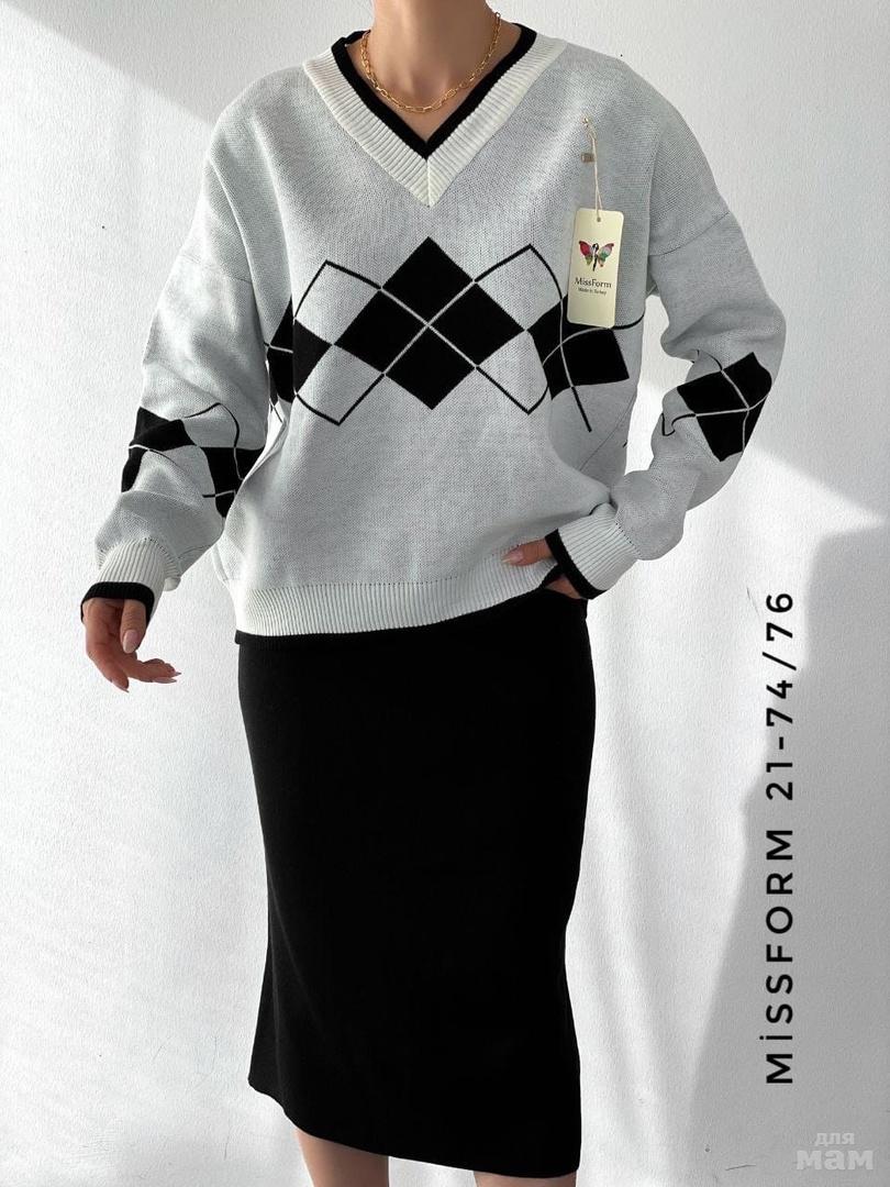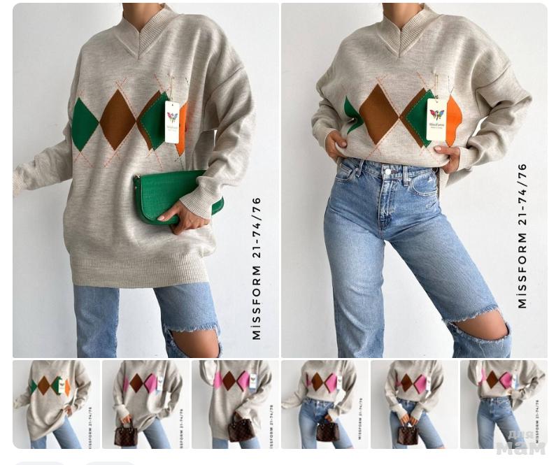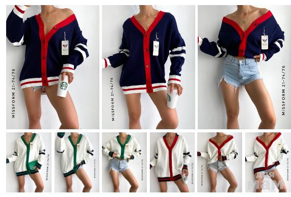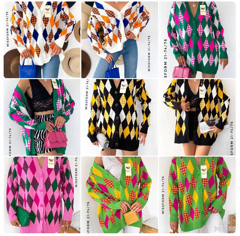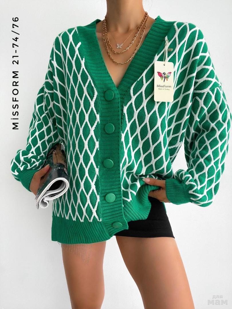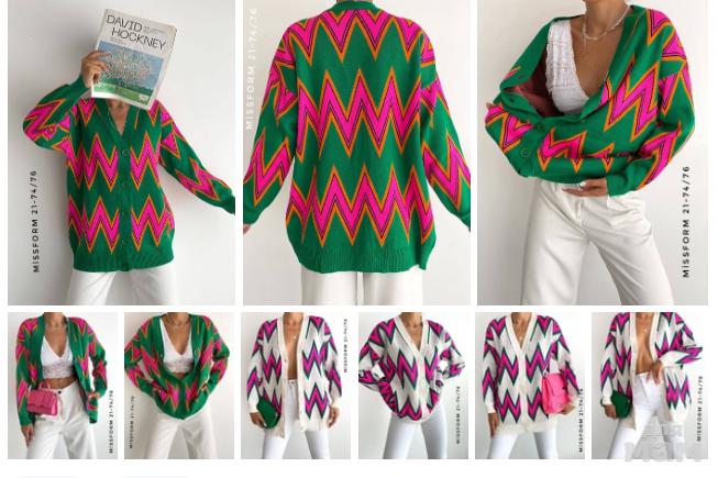 Новая модель кардиганов с геометричным принтом и цветной окантовкой