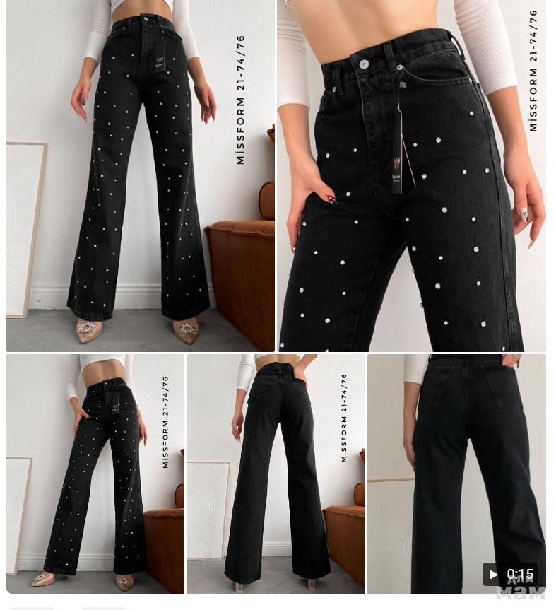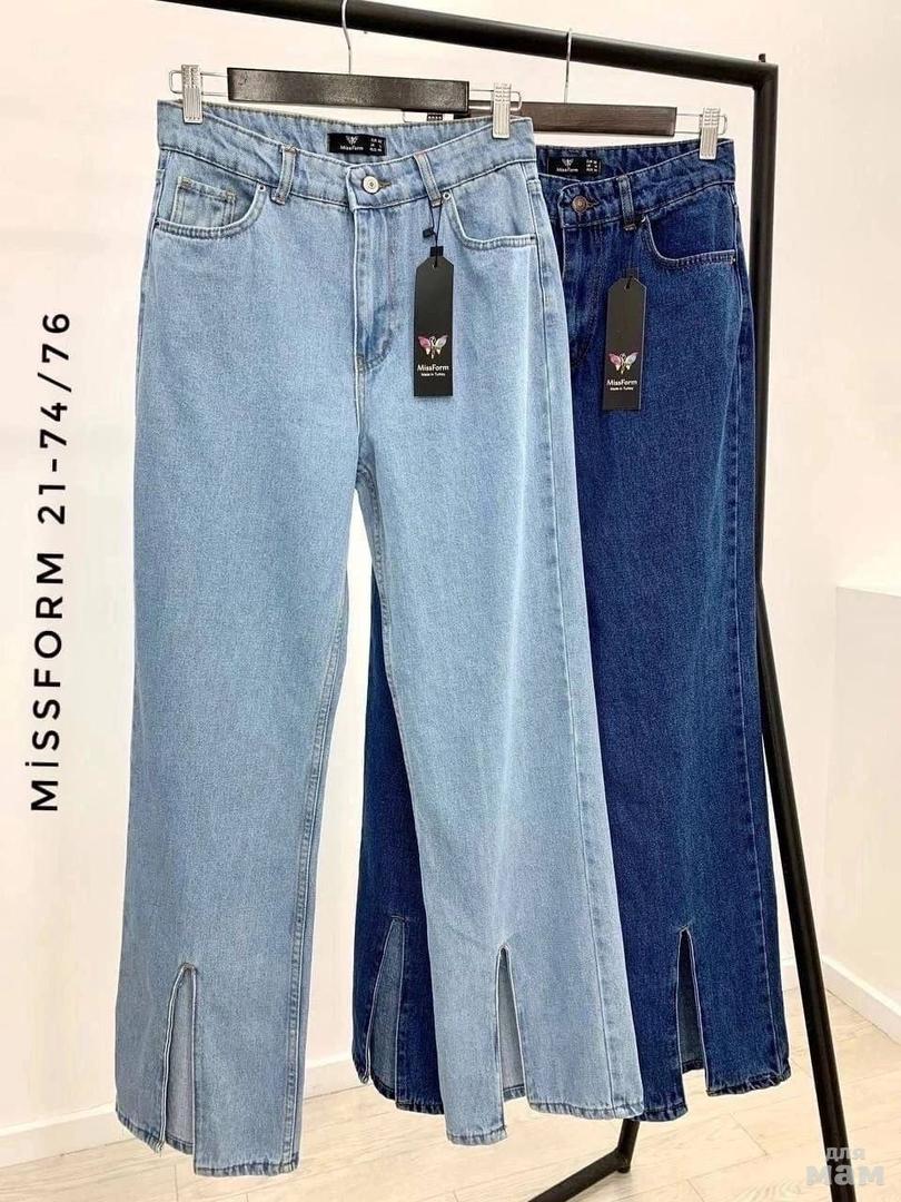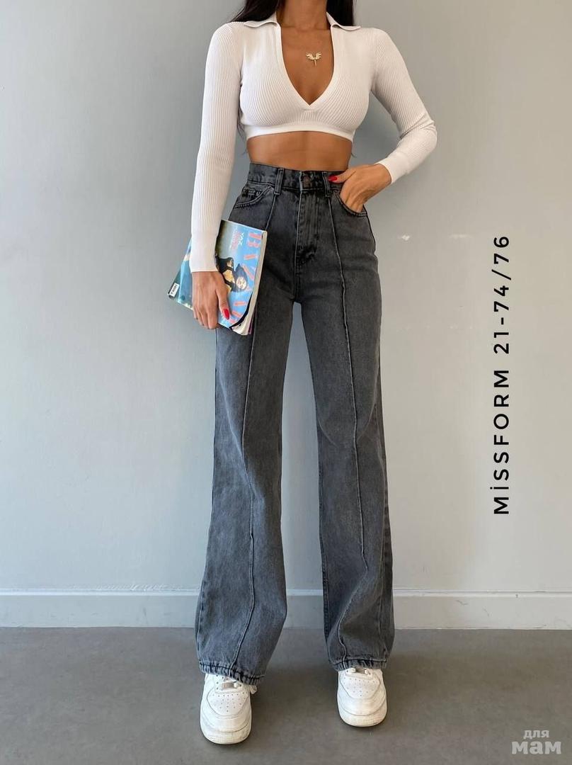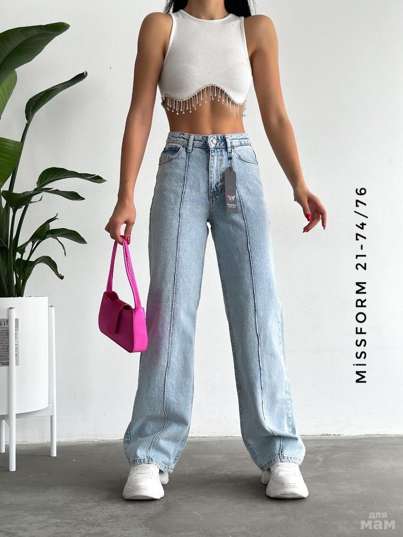 Получили джинсы прямого кроя с прошивкой возле коленок