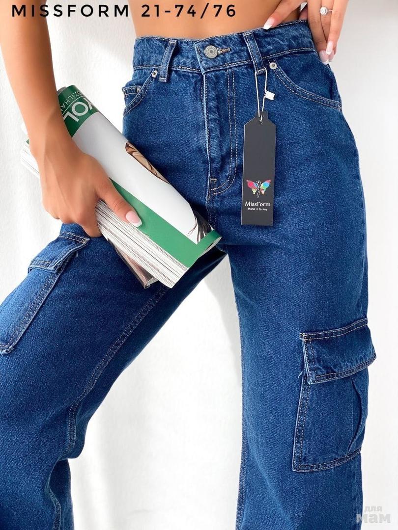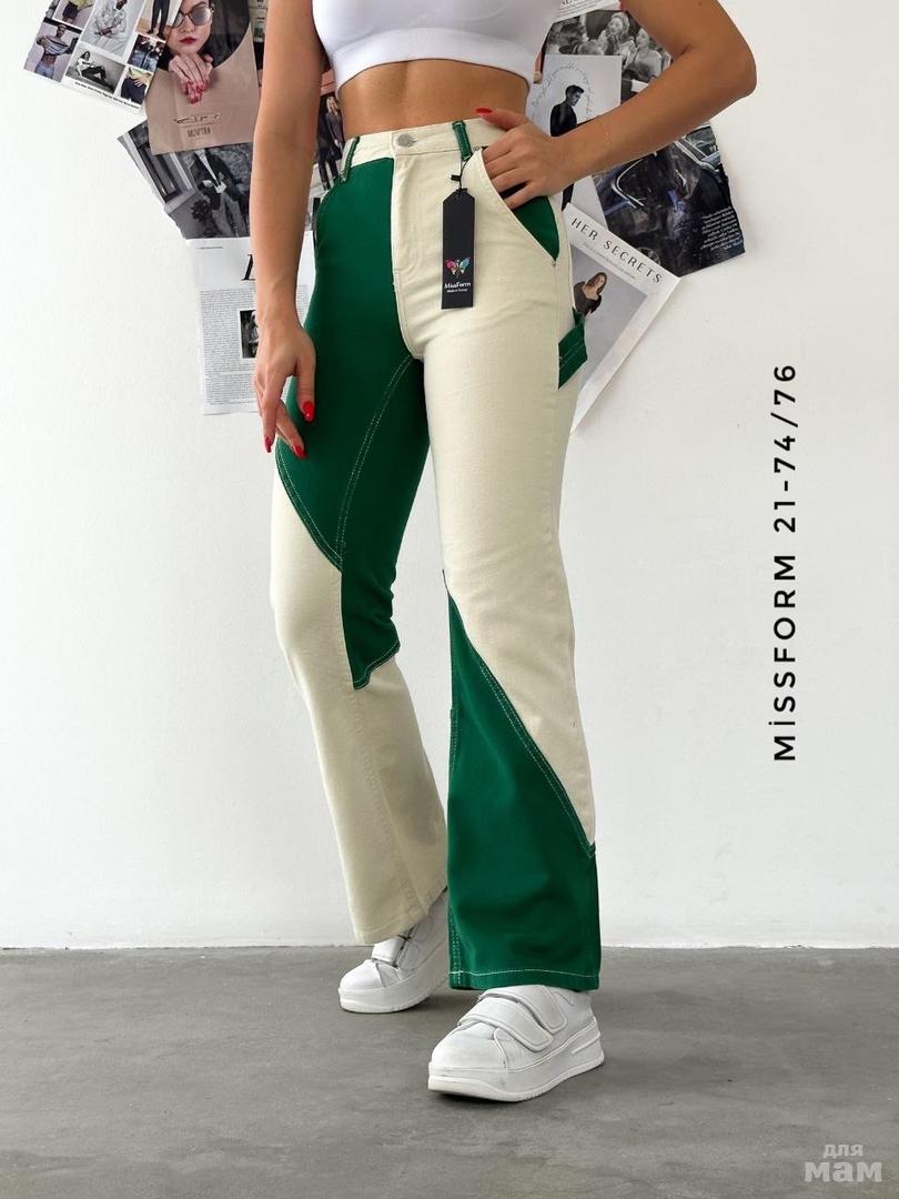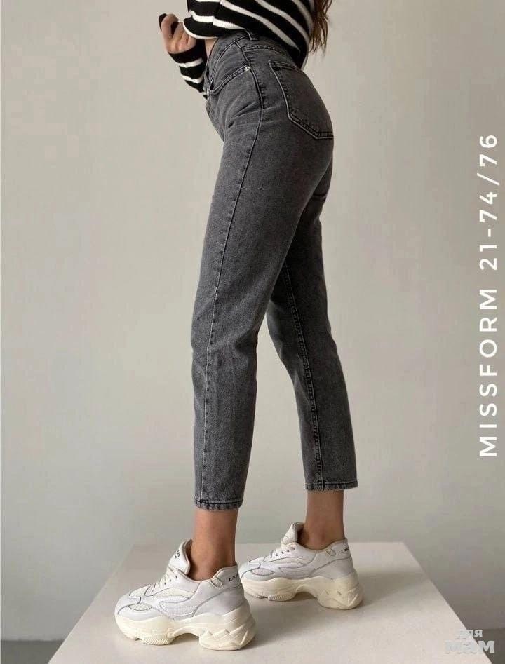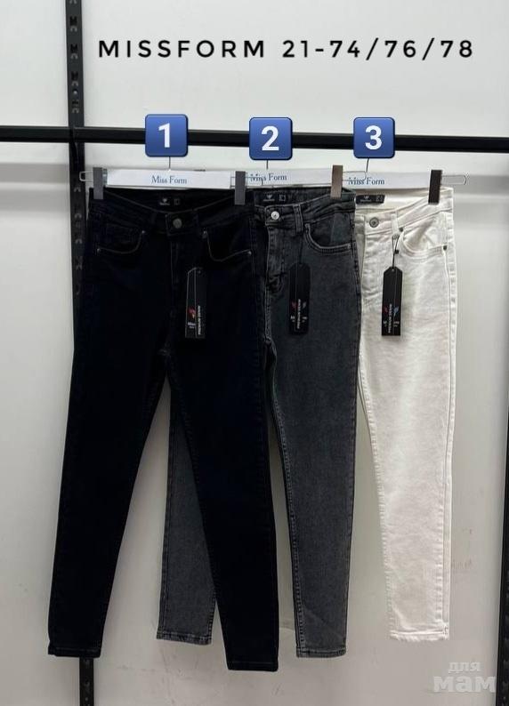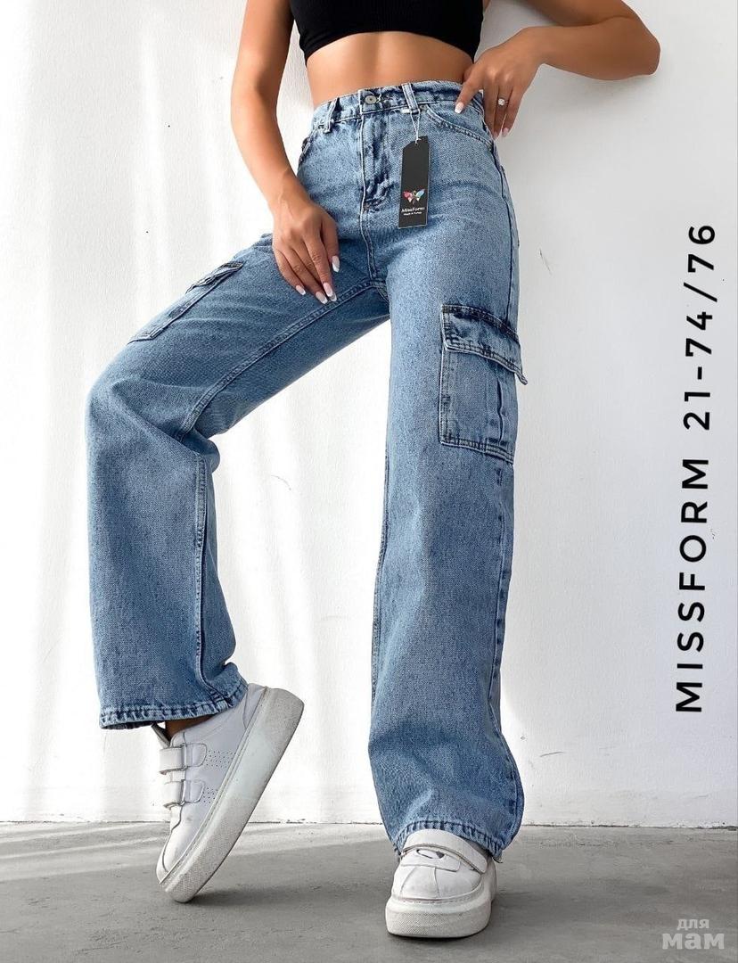 Получили джинсы прямого кроя с прошивкой возле коленок