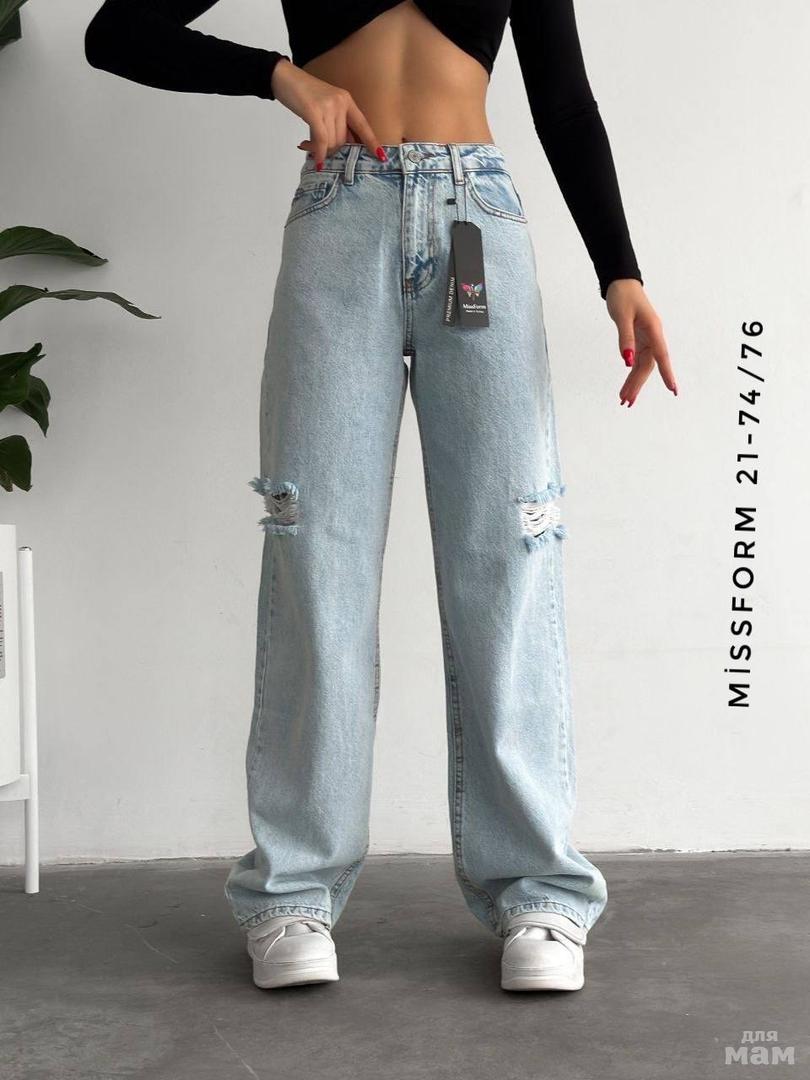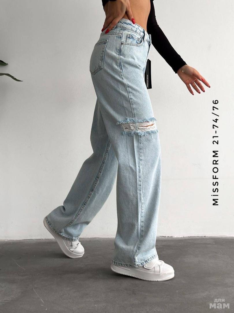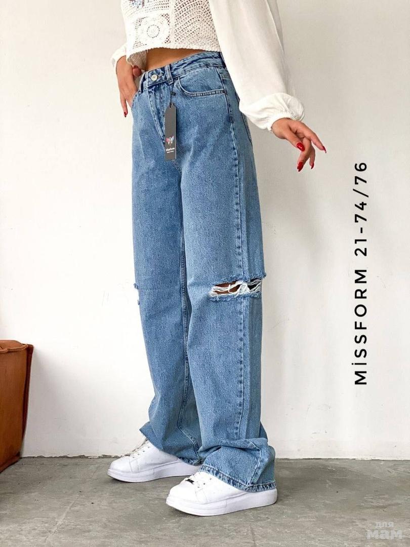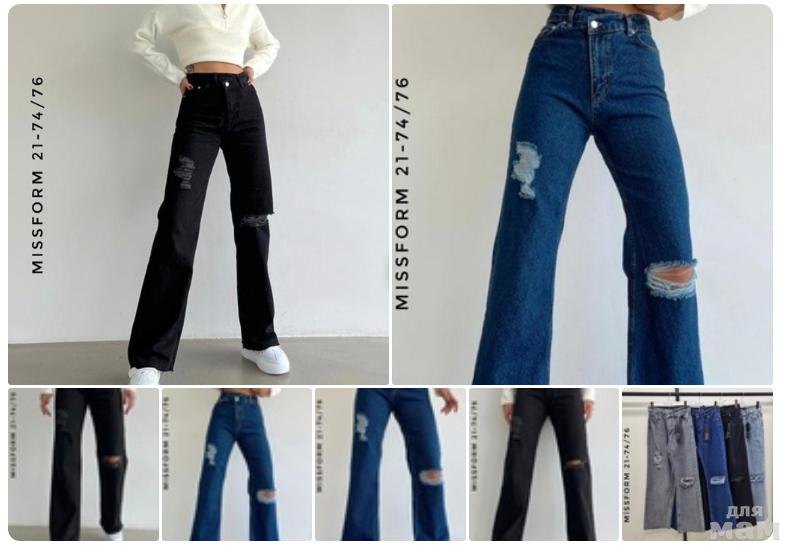 Новая вариация модель джинсов труб с потертостями и небольшой рванкой