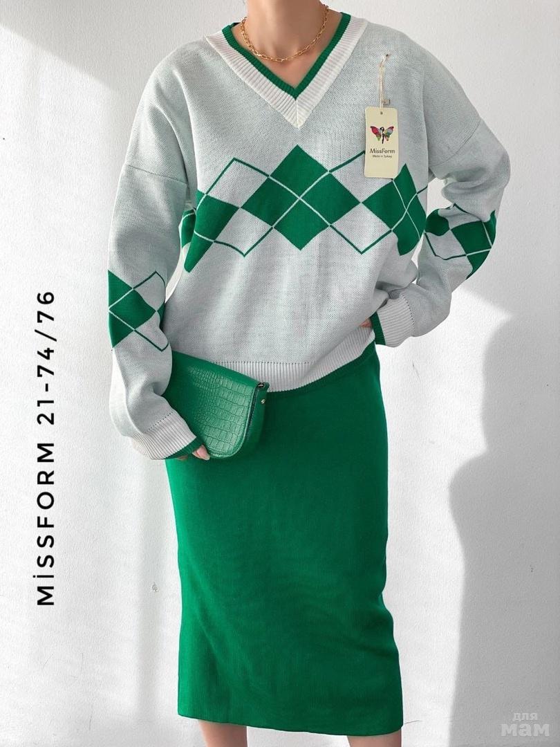 Новая модель элегантных трикотажных костюмов со строчечкой впереди