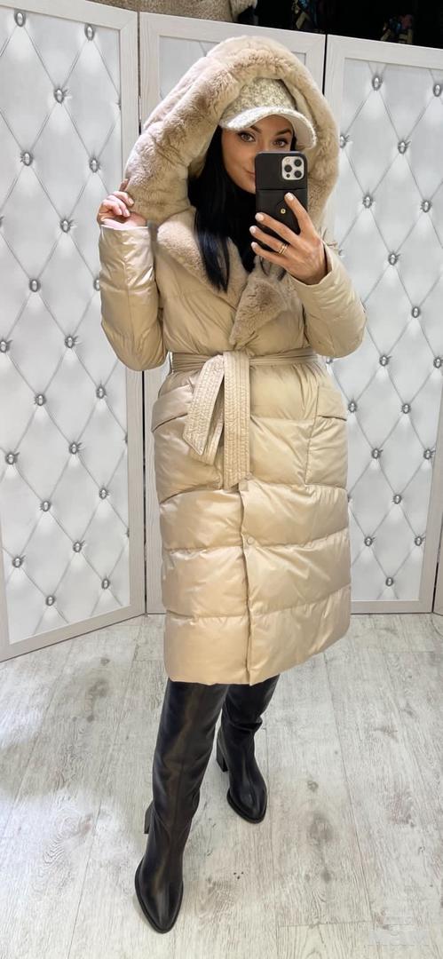 СТИЛЬНОЕ МОДНОЕ ПАЛЬТО С ПОЯСОМ НА КАПЮШОНЕ ( МЕХ НА КАПЮШОНЕ НАТУРАЛЬНЫЙ КРОЛИК