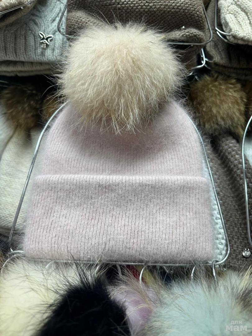 Шапка Ангора ,натуральный пумпон(сьемный)