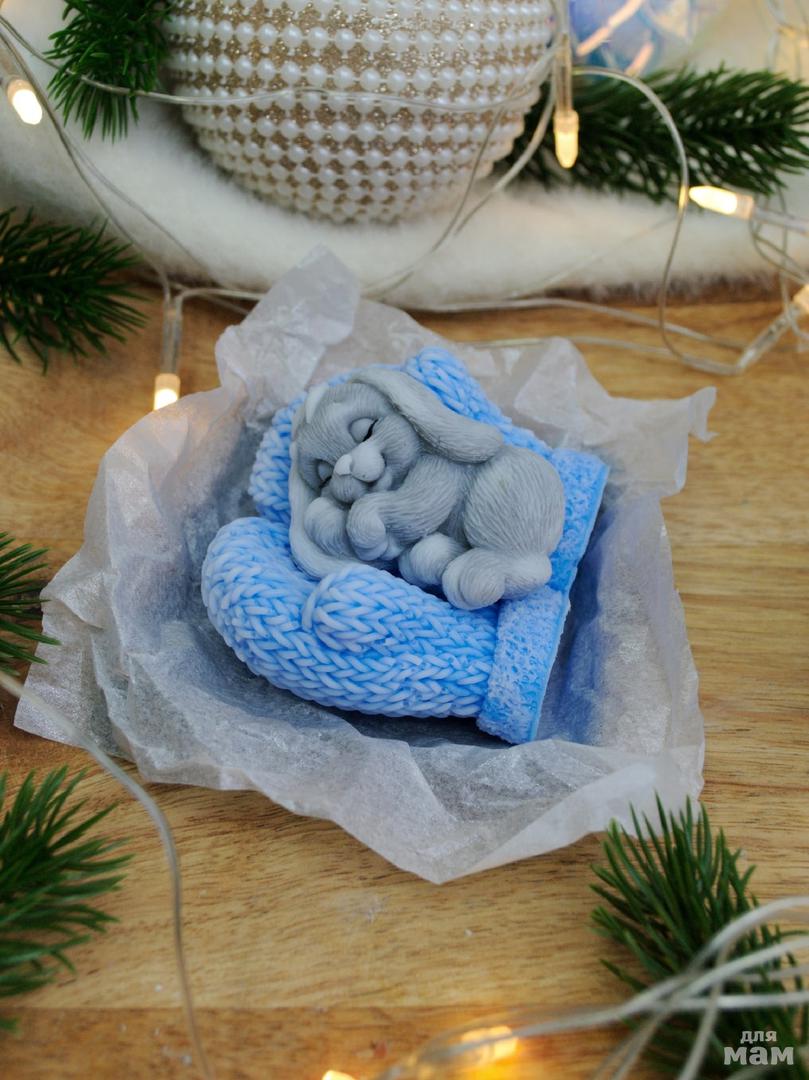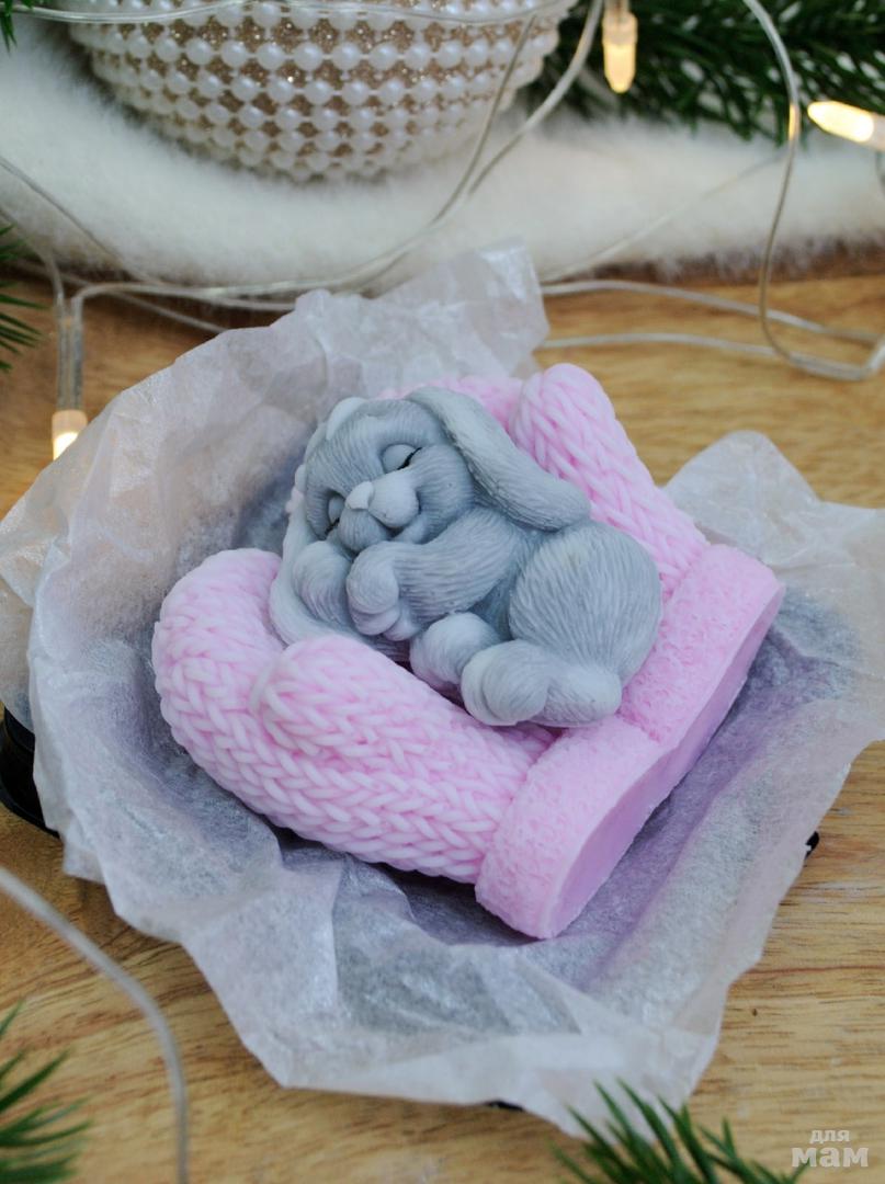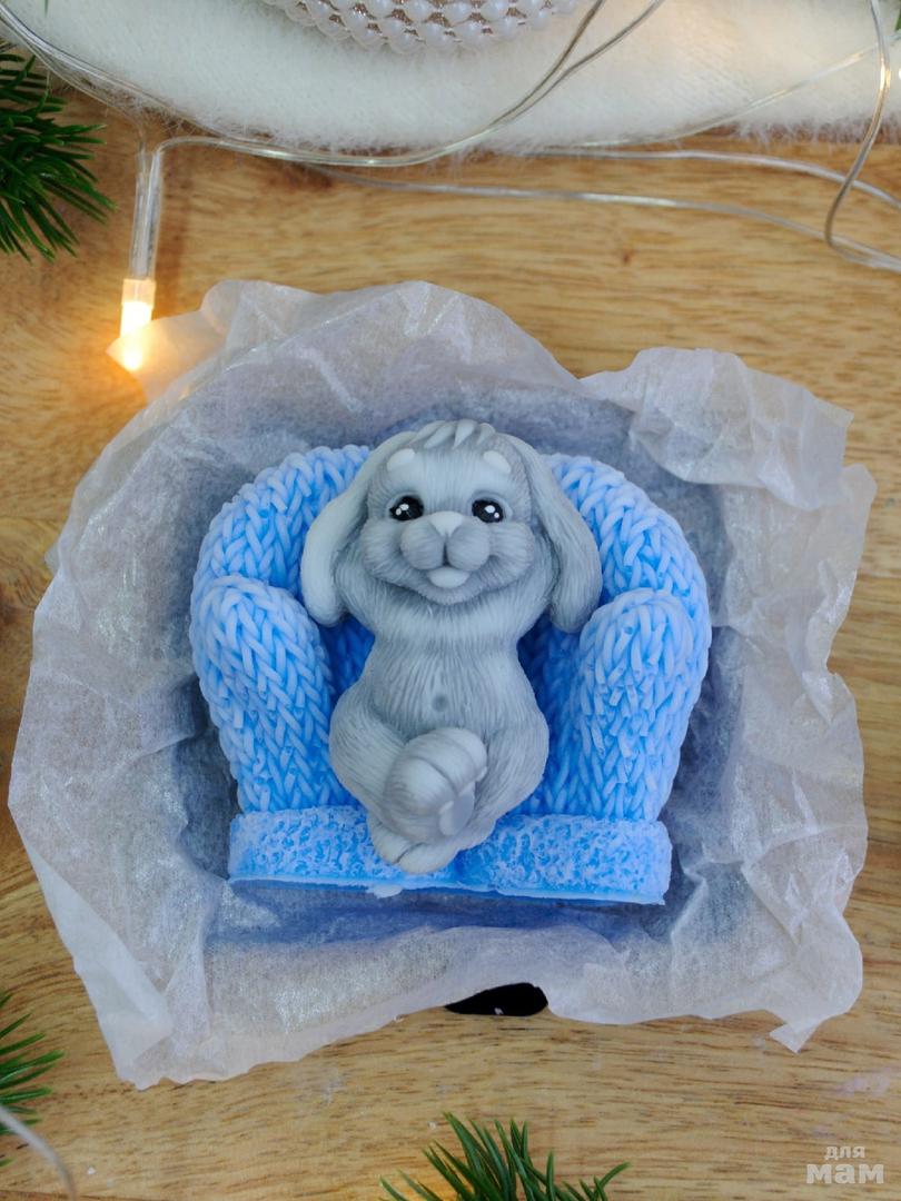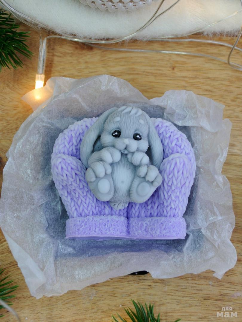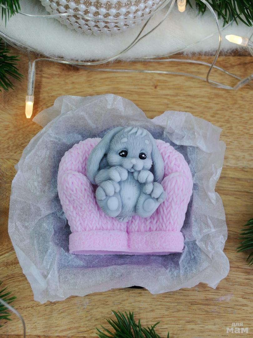 Сувенирное мыло "Зайчонок на варежках"